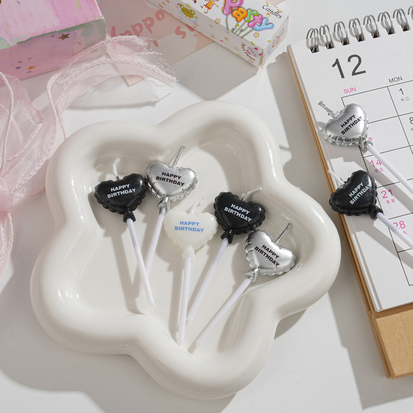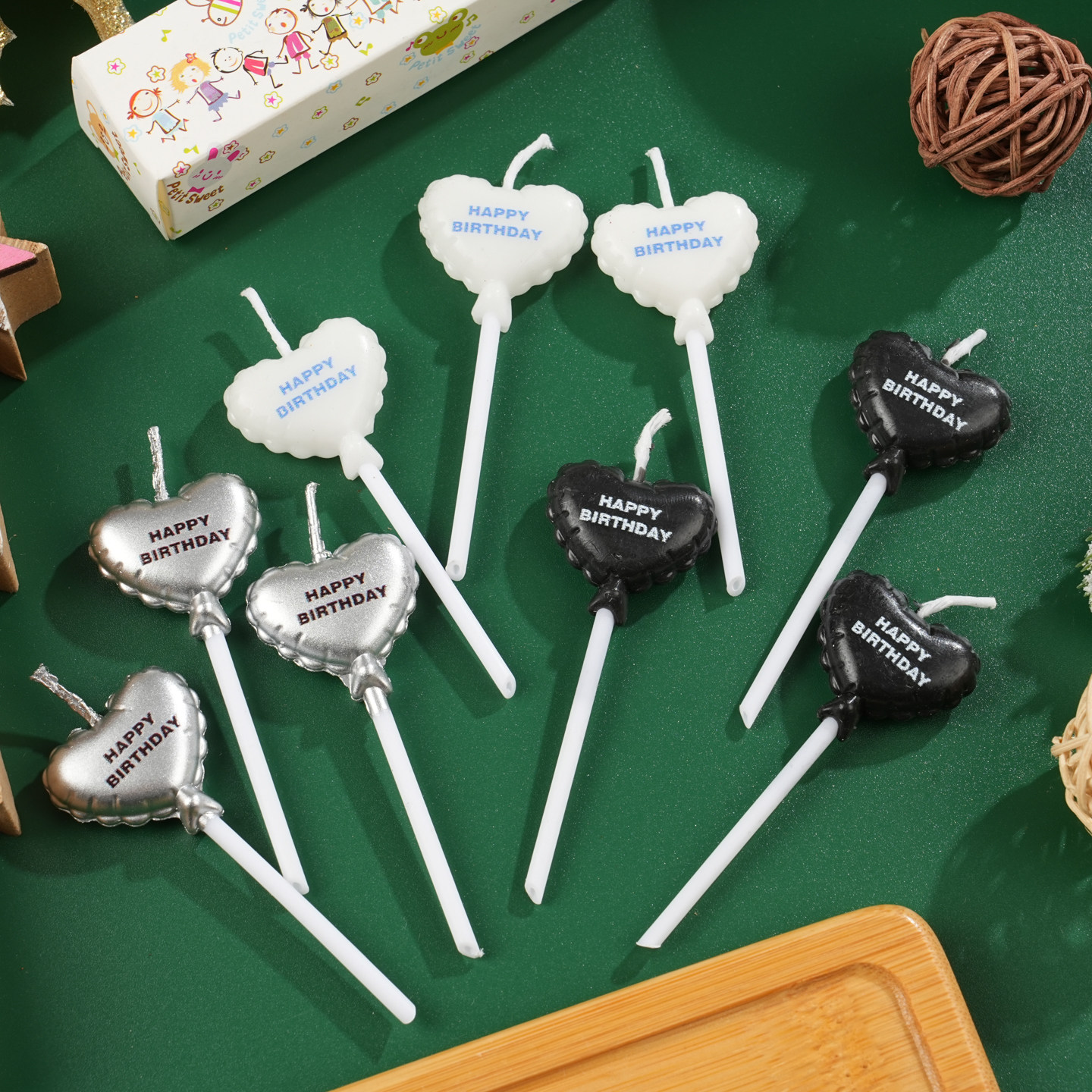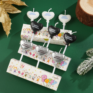 新款 饰插件生日派对烘焙甜品插件 白色银色生日快乐爱心蜡烛蛋糕装