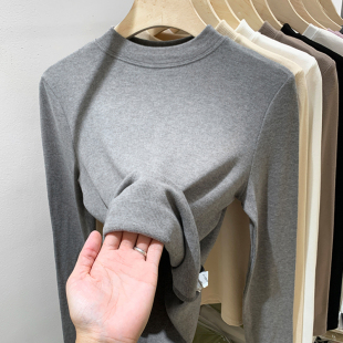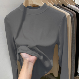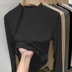 小立领基础款 T恤2025秋冬修身 上衣 女半高长袖 白色德绒内搭打底衫