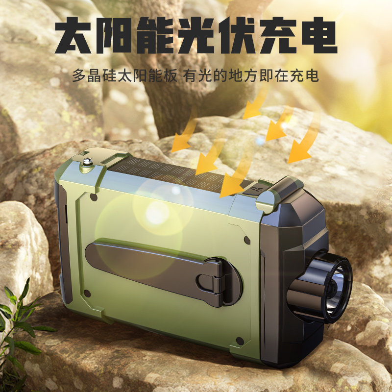 应急防灾战备收音机灯手摇户外随身手电筒强光太阳能充电多功能