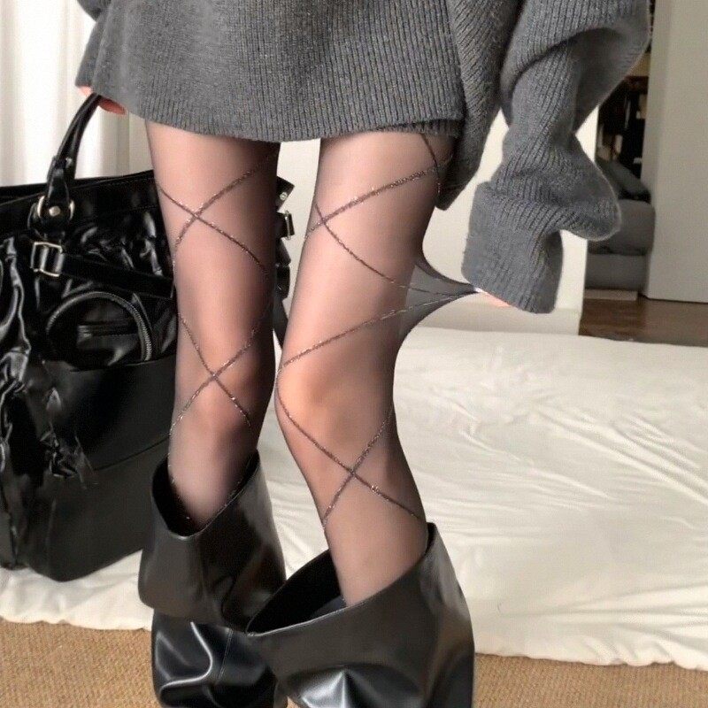 巨美 buling交叉线条辣妹丝袜 我要吹爆这款 早秋韩系黑丝穿搭