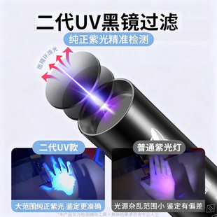 得力紫光灯鉴定玉石检测烟酒专用荧光剂验钞照手电筒强光紫外线笔