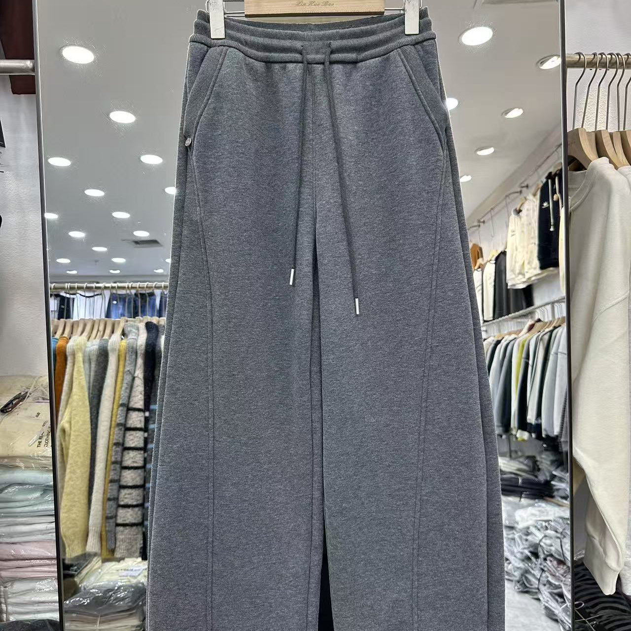 汪0.83 新松紧腰抽绳宽松显瘦百搭休闲弯刀裤 加绒加厚阔腿裤 女冬季