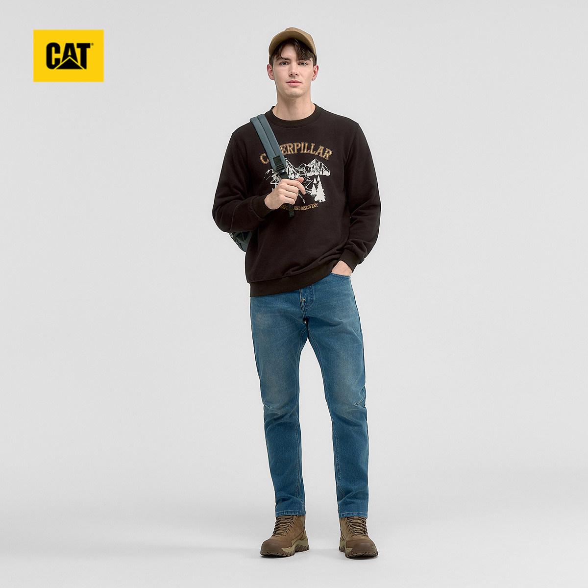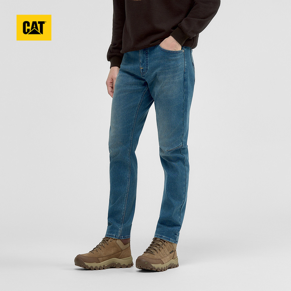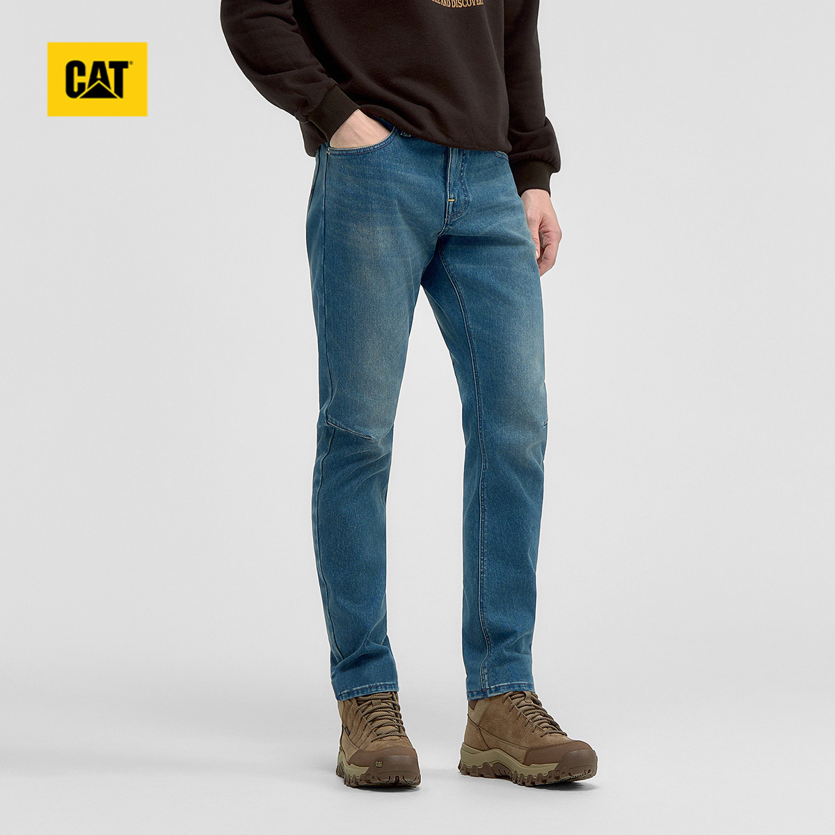 商场同款 简约柔软微弹弯刀型百搭休闲牛仔裤 男士 CAT卡特春季