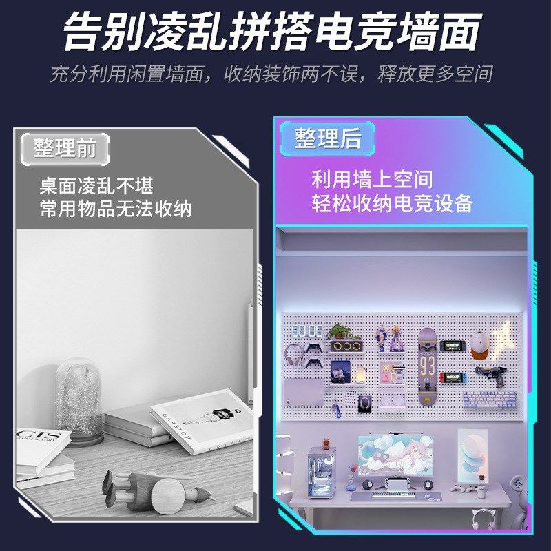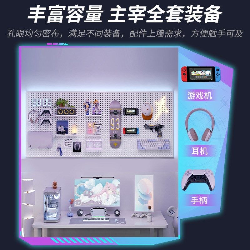 电竞房洞洞板黑色墙上置物架书房上方电脑桌墙面挂板收纳铁艺装 饰