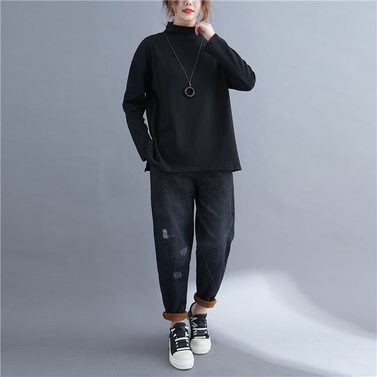 内搭宽松显瘦长袖 高领加厚打底衫 T恤 上衣2025秋冬装 实拍文艺大码