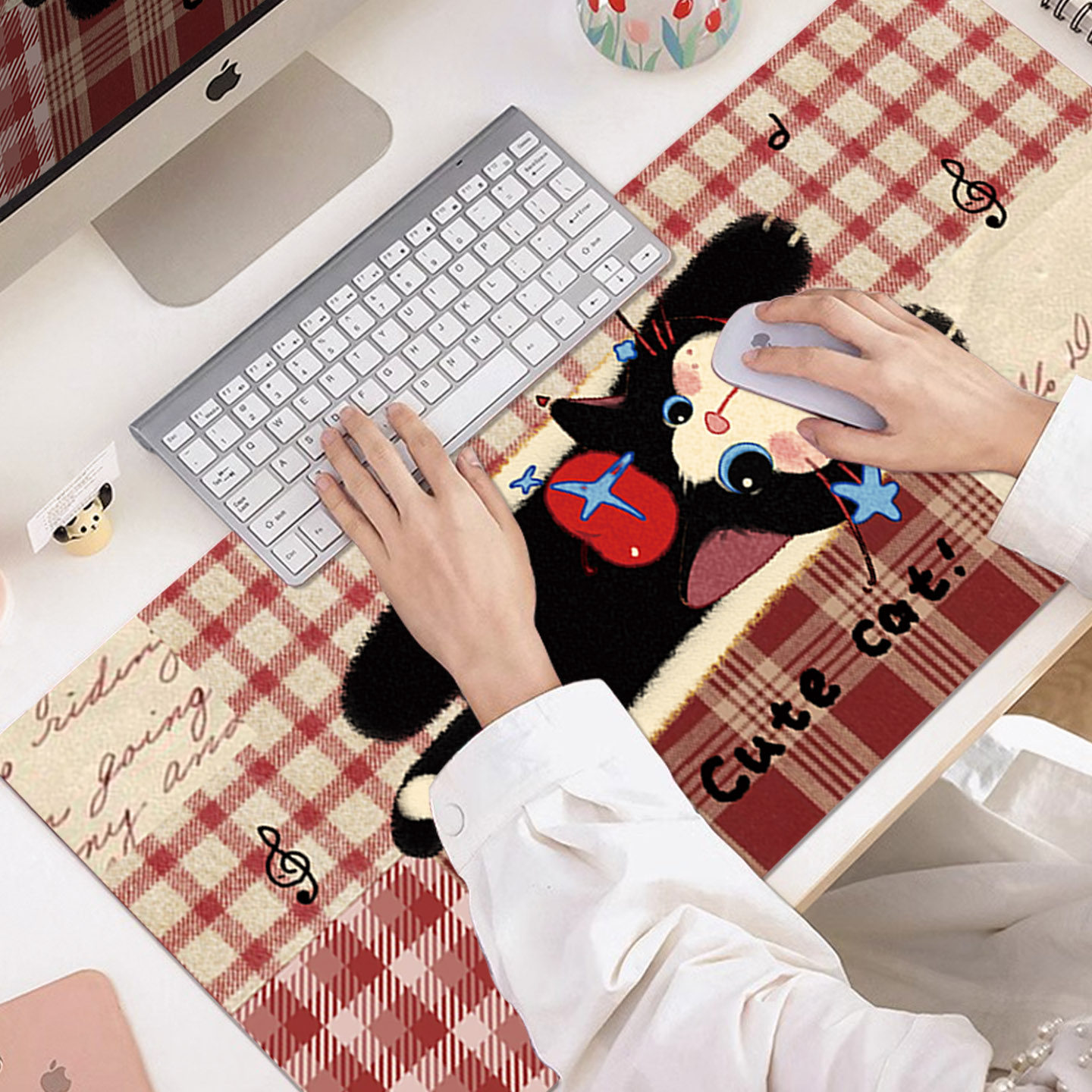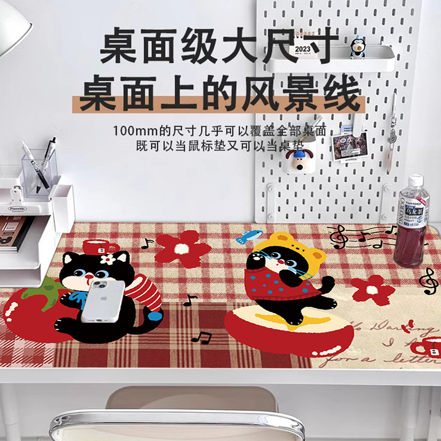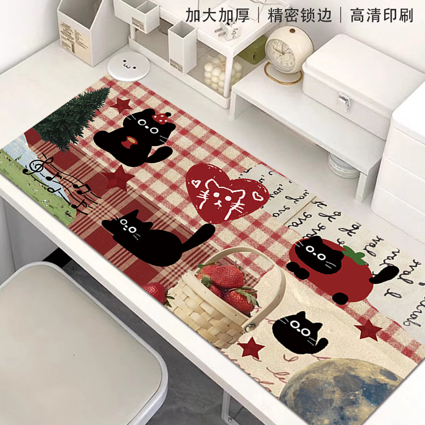 拼贴小黑猫鼠标垫超大号女生高颜值红色办公室护腕垫电脑桌垫桌面