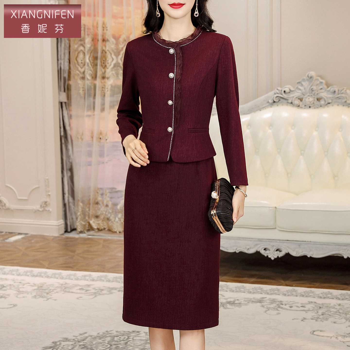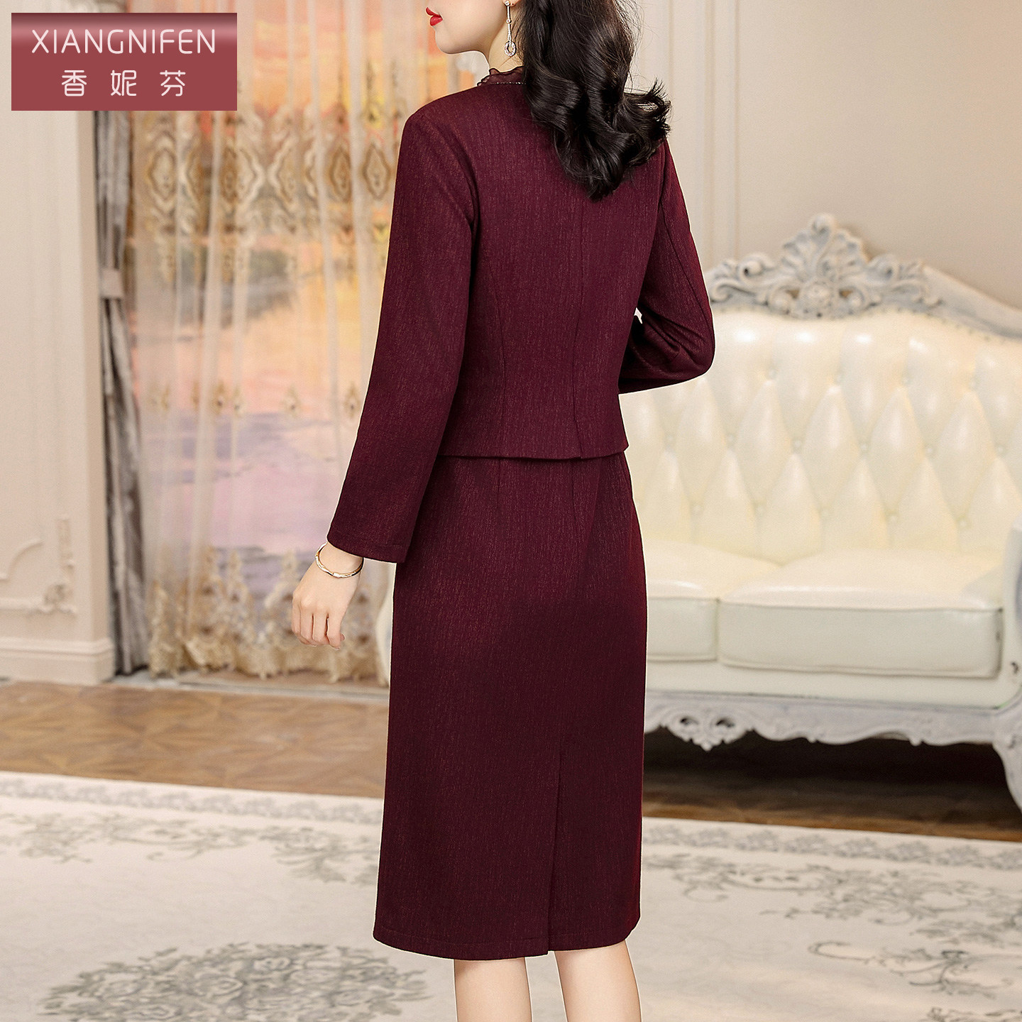 秋冬洋气套装 香妮芬轻奢高级感气质假两件套裙装 中年妈妈2025新款