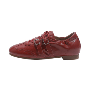 红色方头系带休闲运动玛丽珍鞋 春新款 骄屿内增高芭蕾德训鞋 真皮