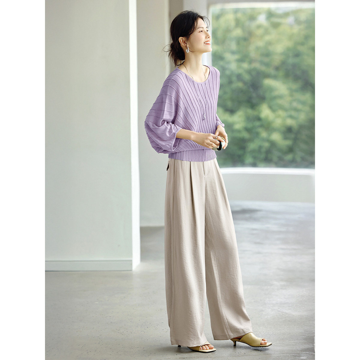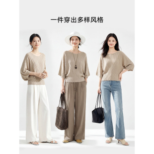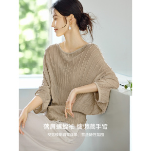 宽松慵懒风纯色上衣 女2026春季 XWI欣未含莱赛尔亚麻蝙蝠袖 针织衫