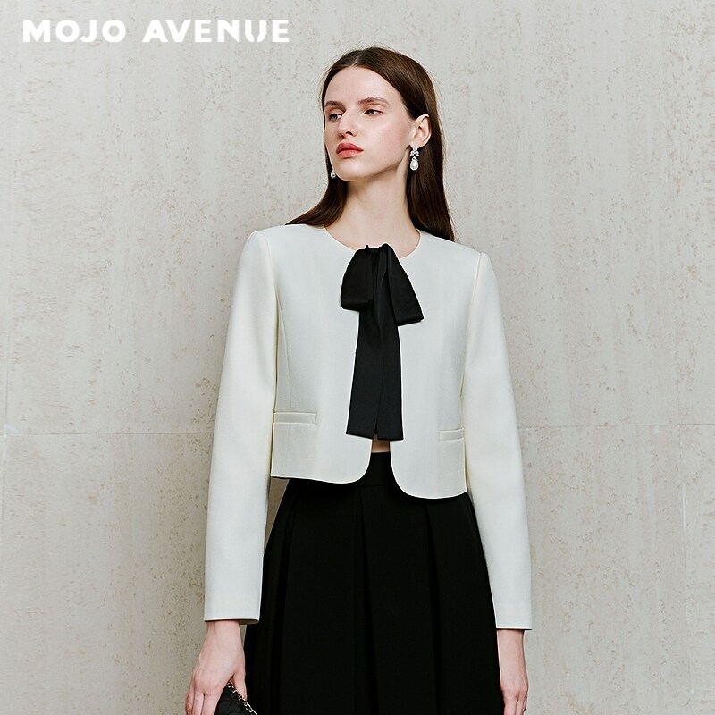 朗姿 2026简约高级千金短外套蝴蝶结飘带精致通勤约会 MOJO春新品