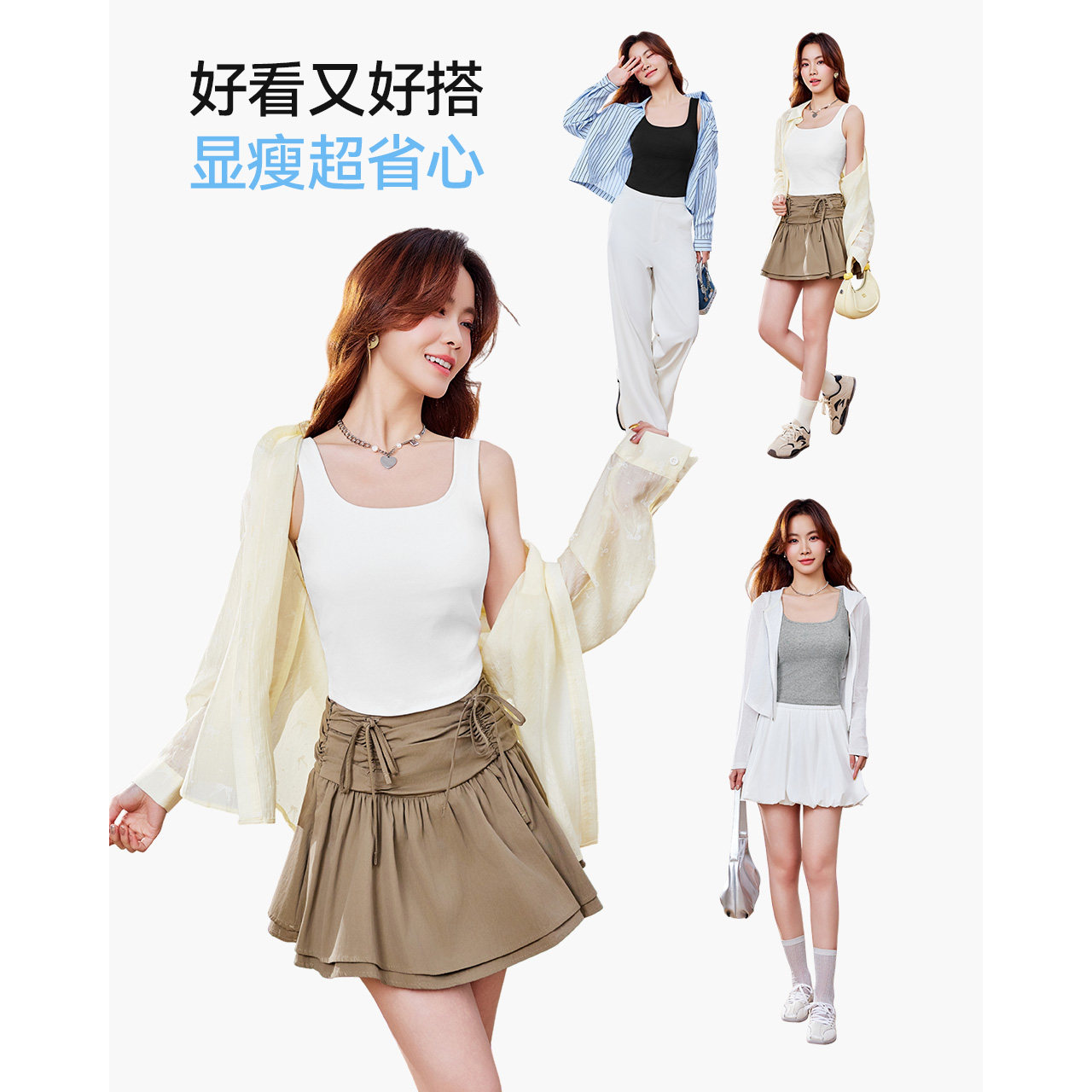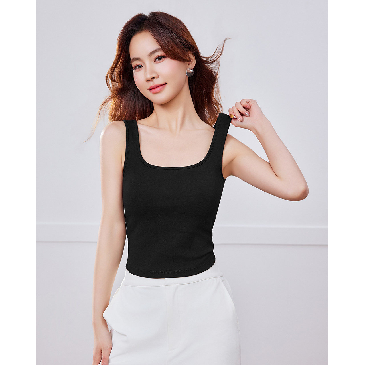 方领修身 IEF 韩系简约纯色修身 新款 宽肩带吊带背心 爱依服2026夏季
