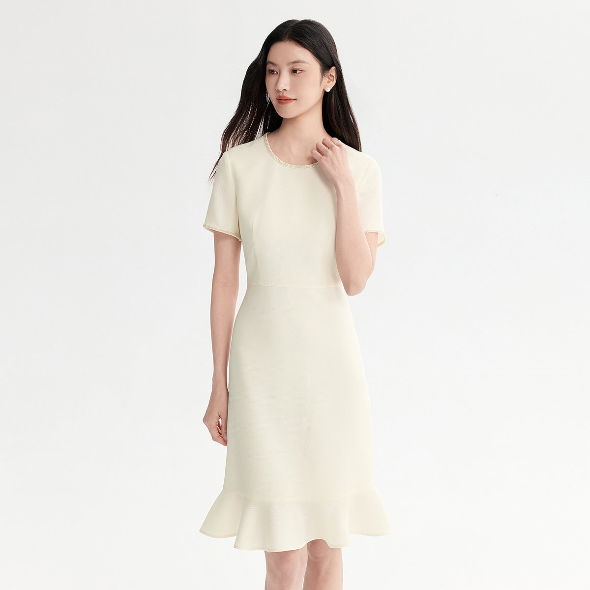 圆领长裙女装 简约休闲通勤短袖 新款 FINITY菲妮迪连衣裙2026年春季