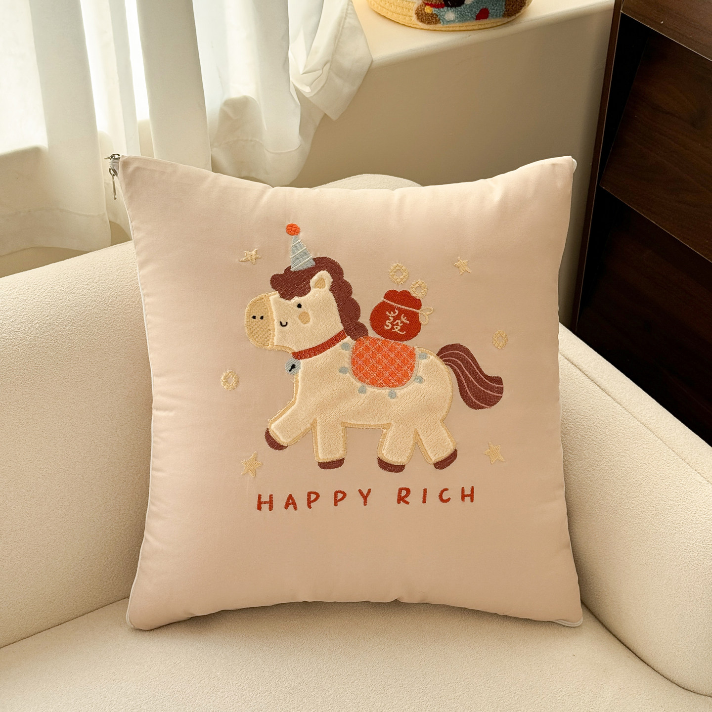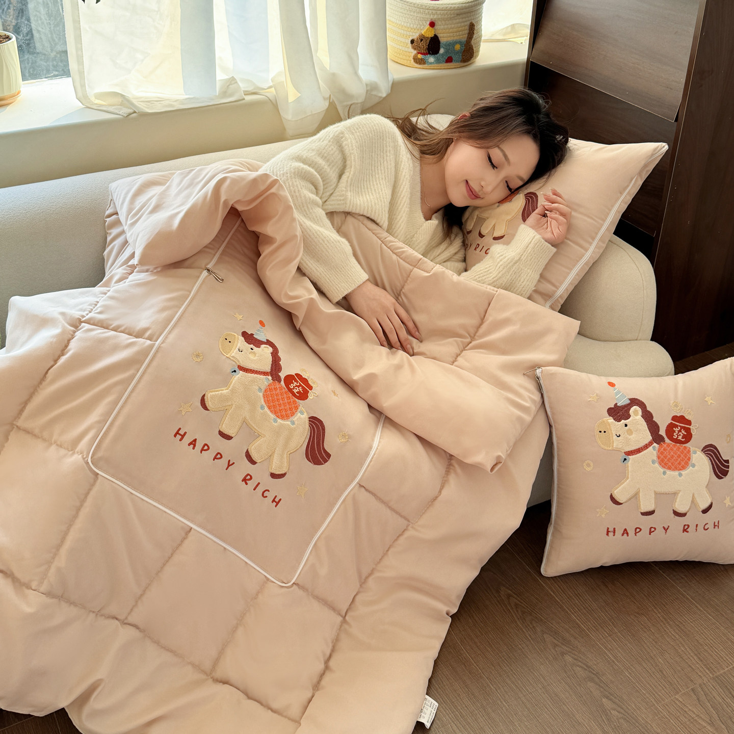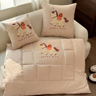 马年卡通抱枕被子两用车载沙发靠垫午休折叠枕头办公室宿舍空调被