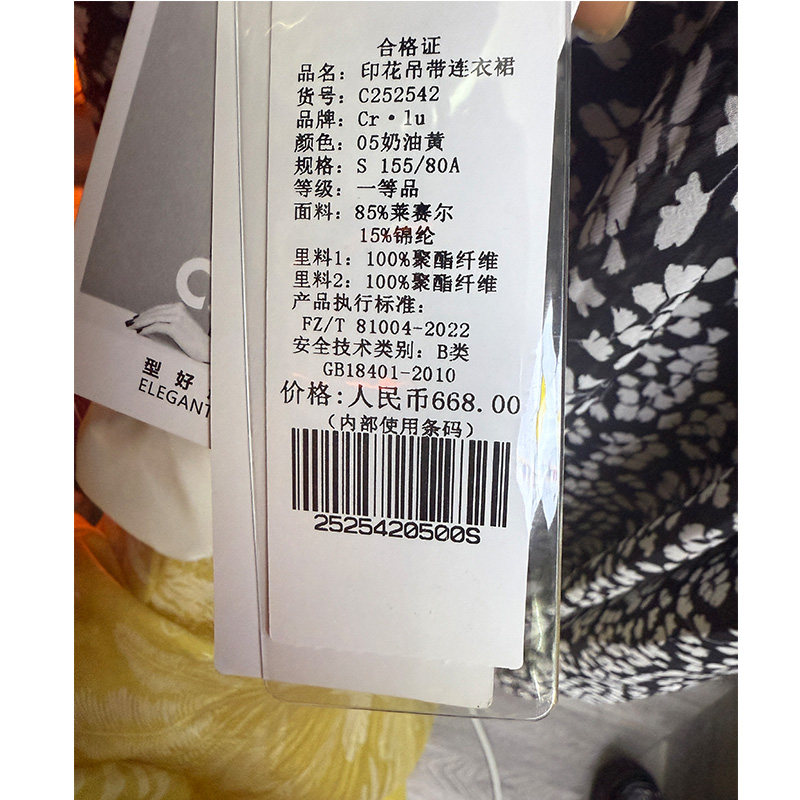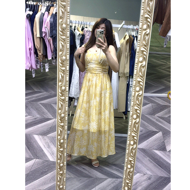 可路莎专柜正品 热带印花日常 252542吊带长裙收腰黄色连衣裙女装