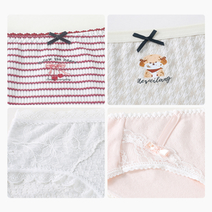 少女蕾丝甜美可爱印花女生三角裤 红豆女士内裤 纯棉全棉裆抗菌短裤