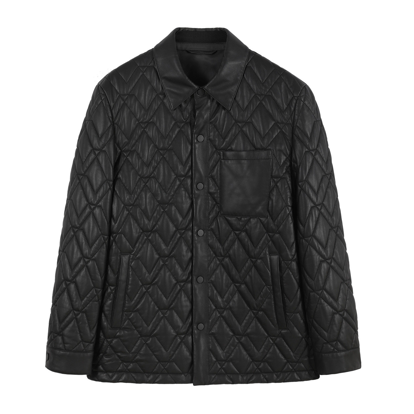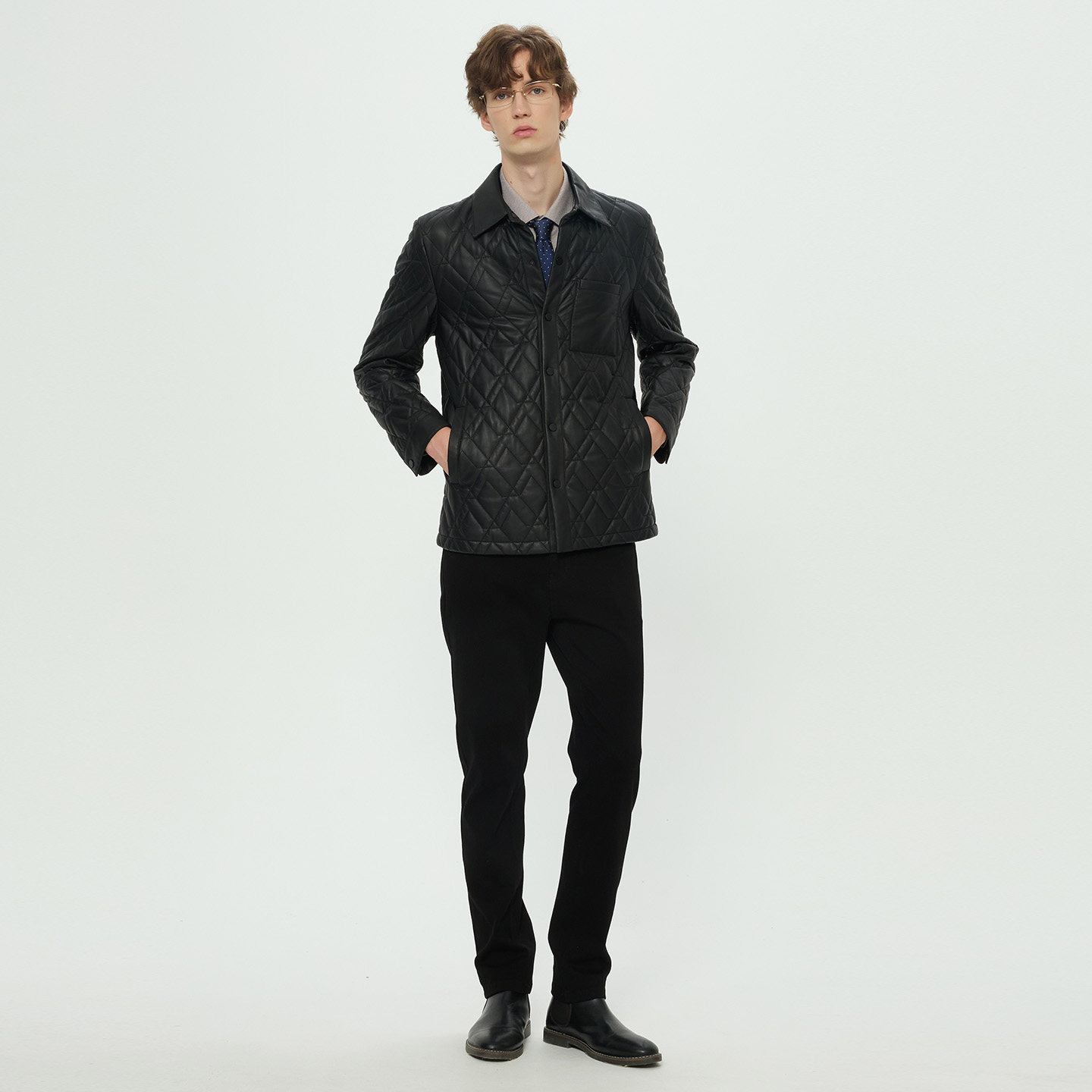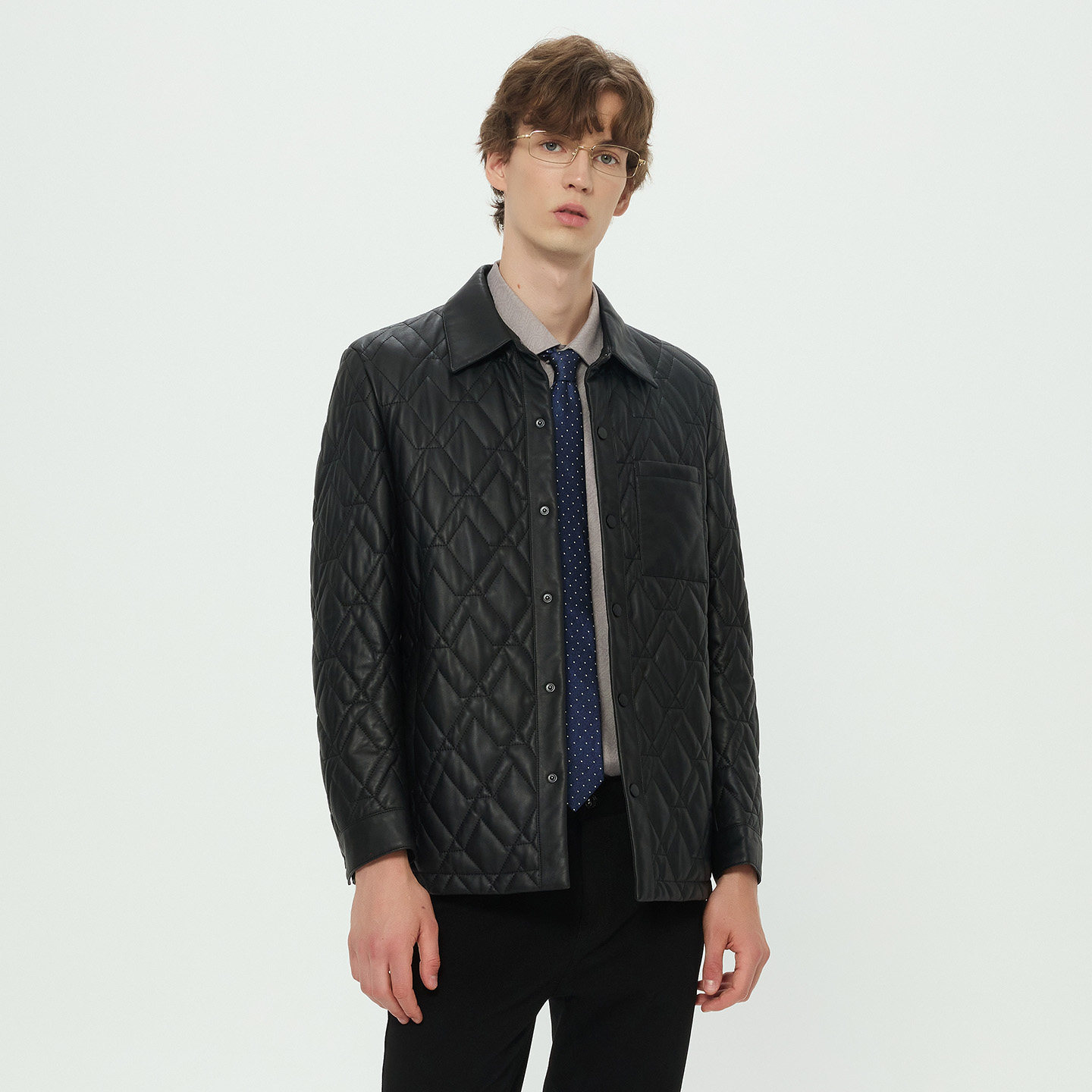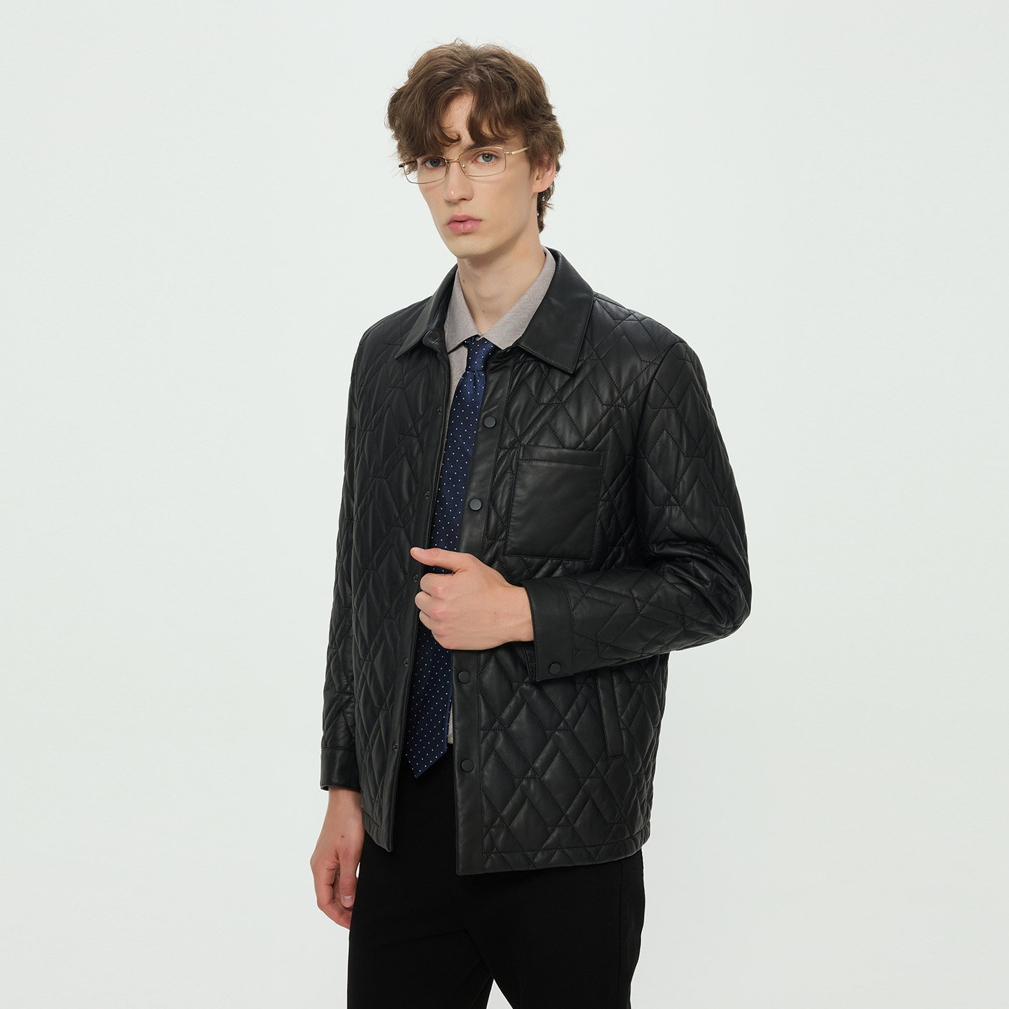 男士 新款 DIDIBOY2025冬季 黑色保暖高端真皮皮衣外套 羊毛填充