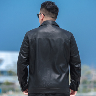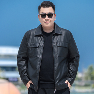 肥佬时尚 潮流外套秋冬新款 百搭翻领皮夹克 皮衣男加肥大码 机车工装