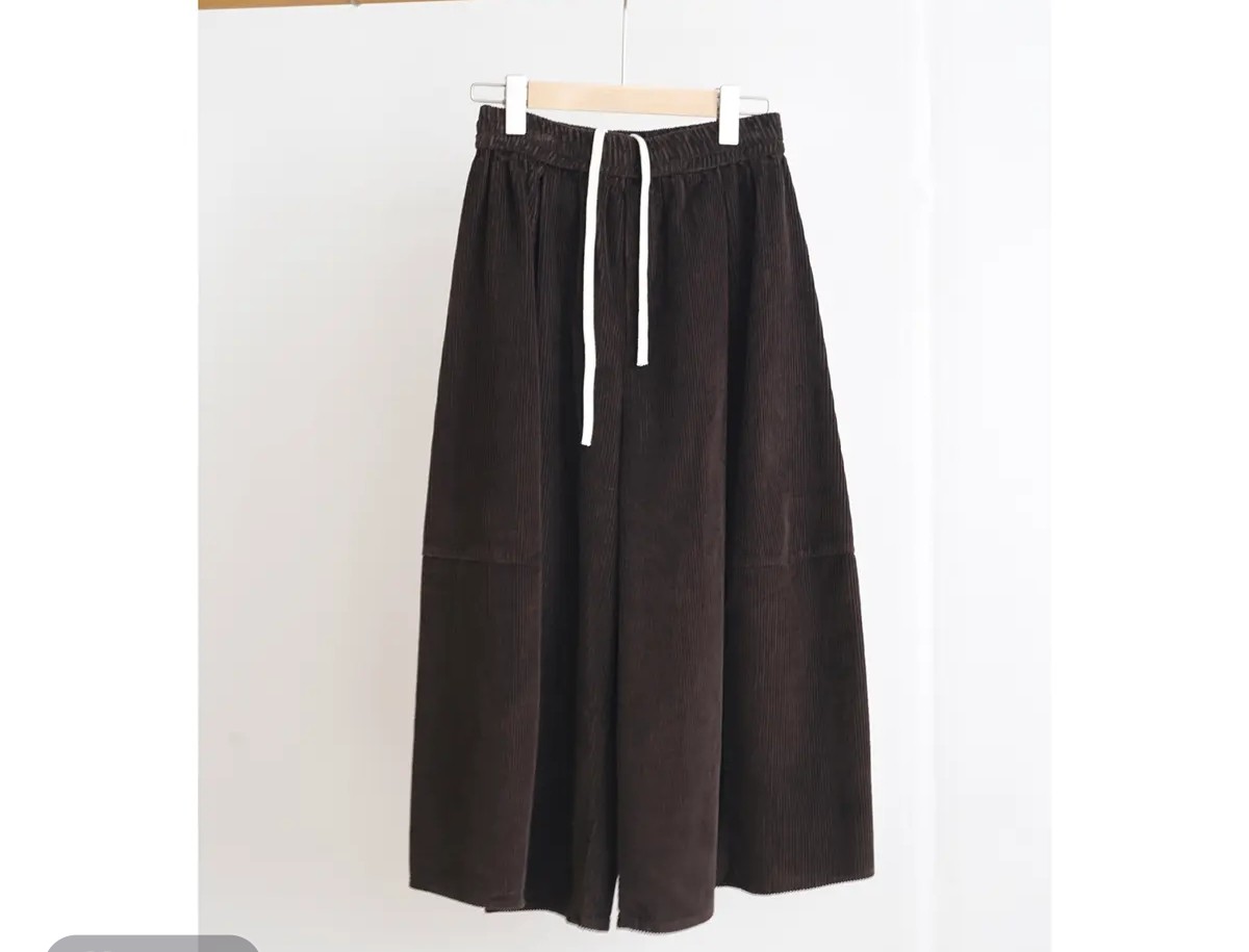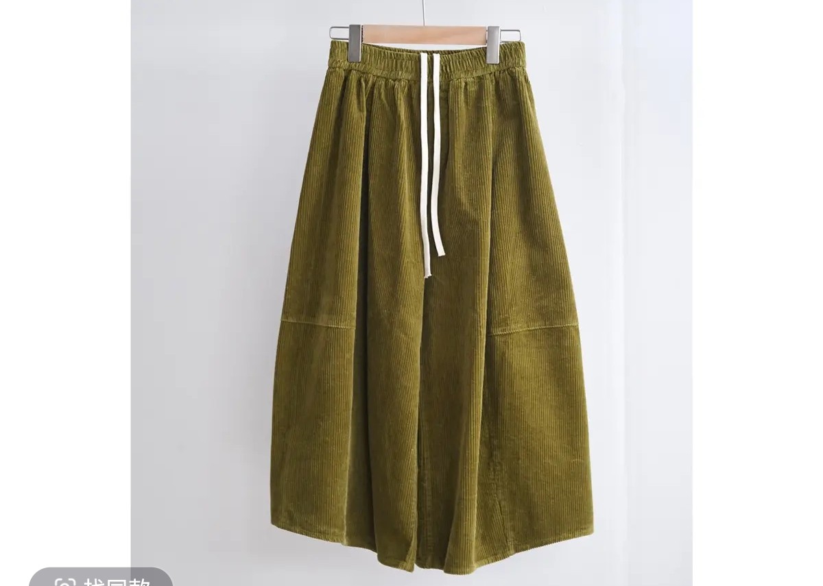 阔腿女秋季 复古灯芯绒松紧腰系带八分裤 AWKZ009 海街日集