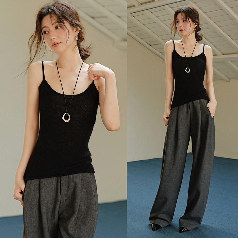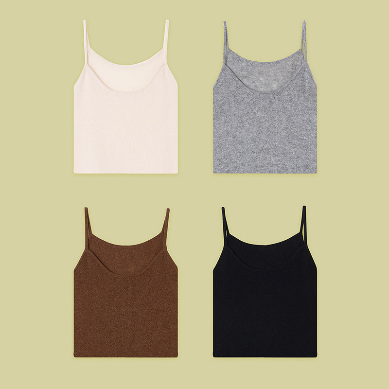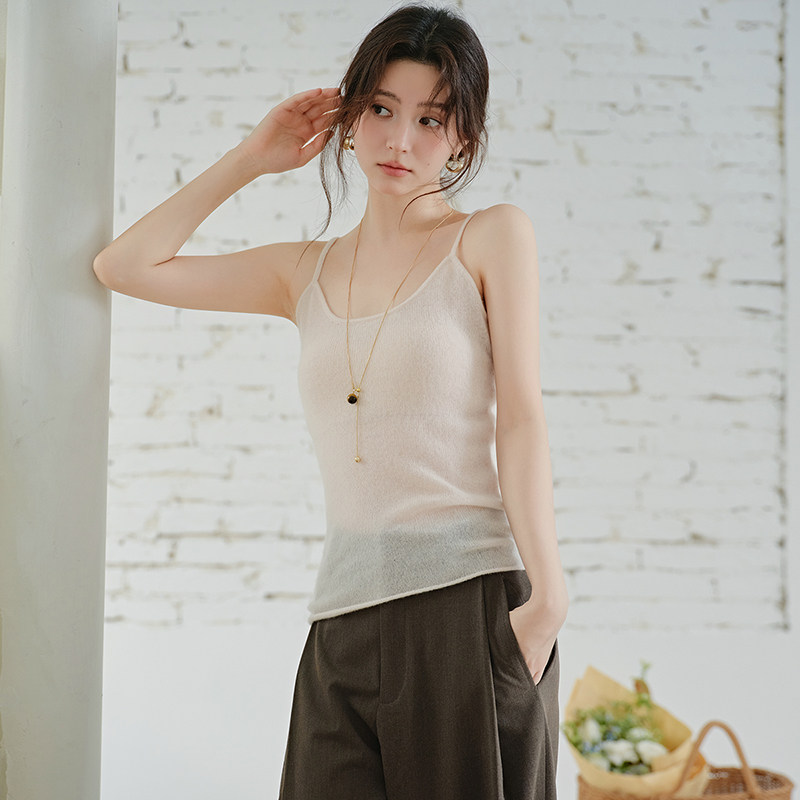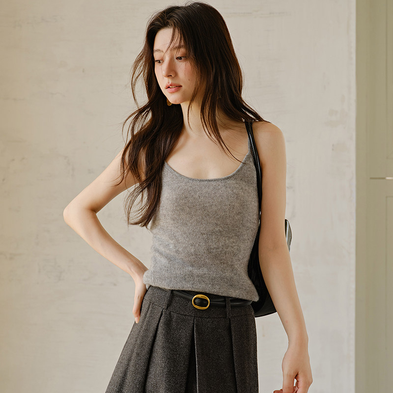 思诺芙德U领100%山羊绒吊带女25冬新款 细带卷边针织打底背心 无袖