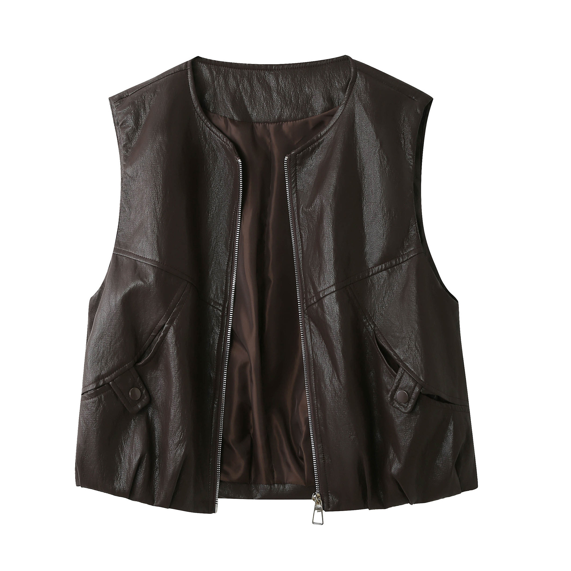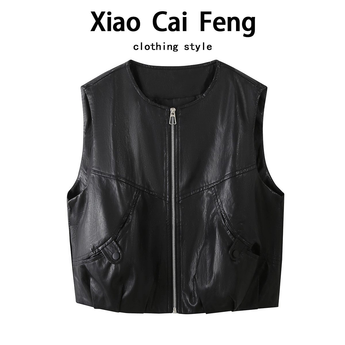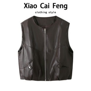 老钱风皮马甲时髦洋气女装 PU皮衣背心外套坎肩外搭夹克上衣秋 无袖