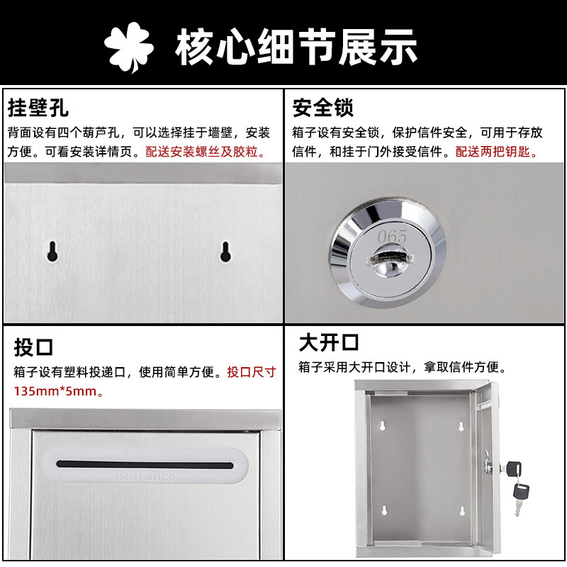 不锈钢意见箱大号挂墙带锁信件建议投诉箱爱心投币箱抽奖 包邮