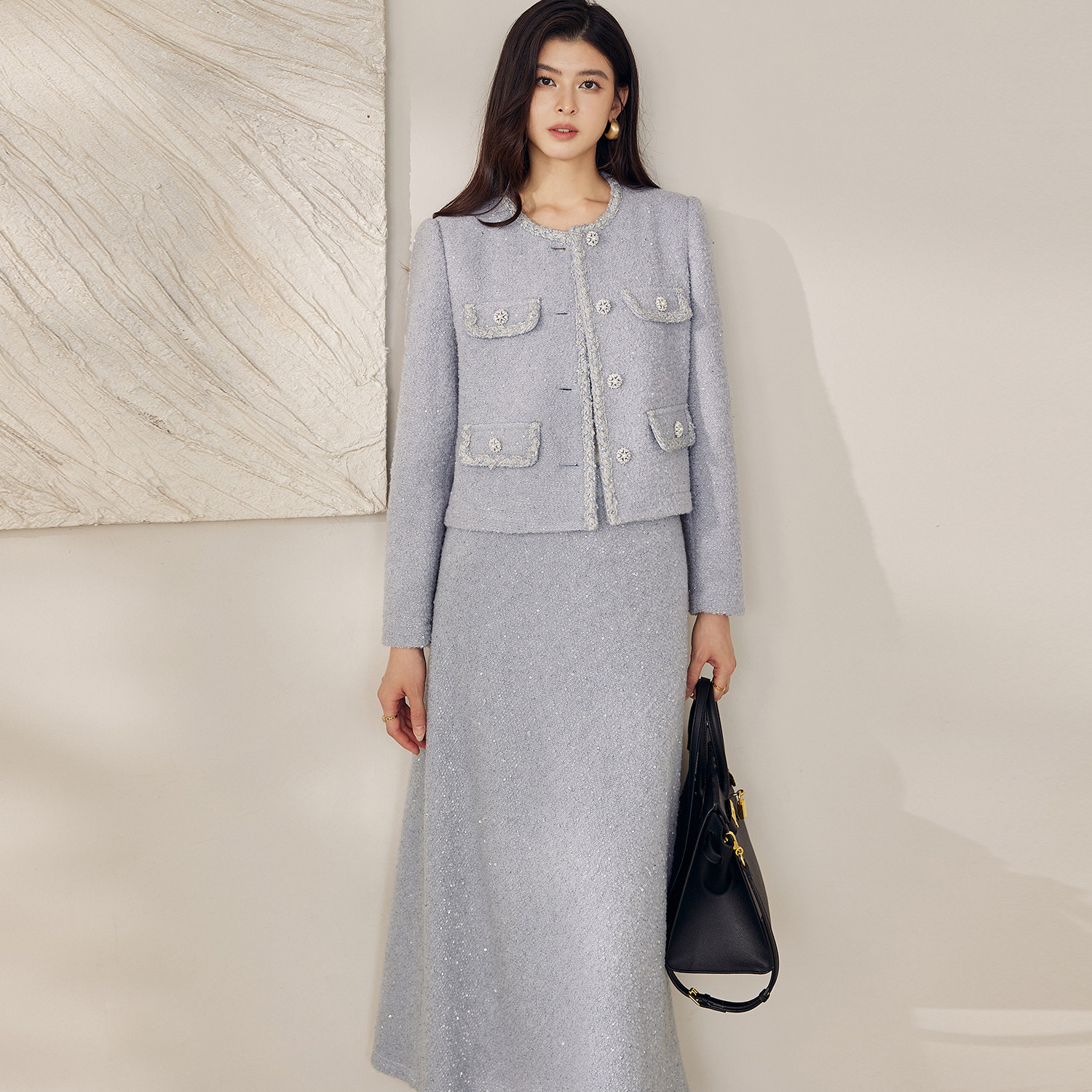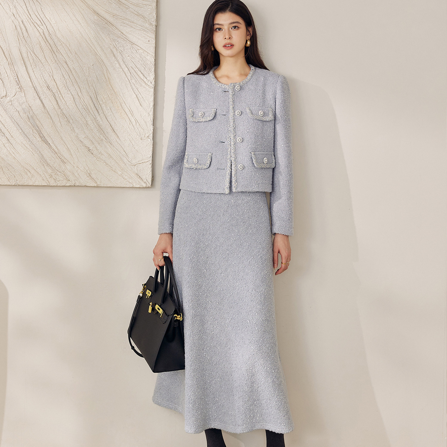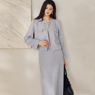 轻奢35%绵羊毛外套半身裙两件套裙13074 女冬季 罗衣法式 小香风套装