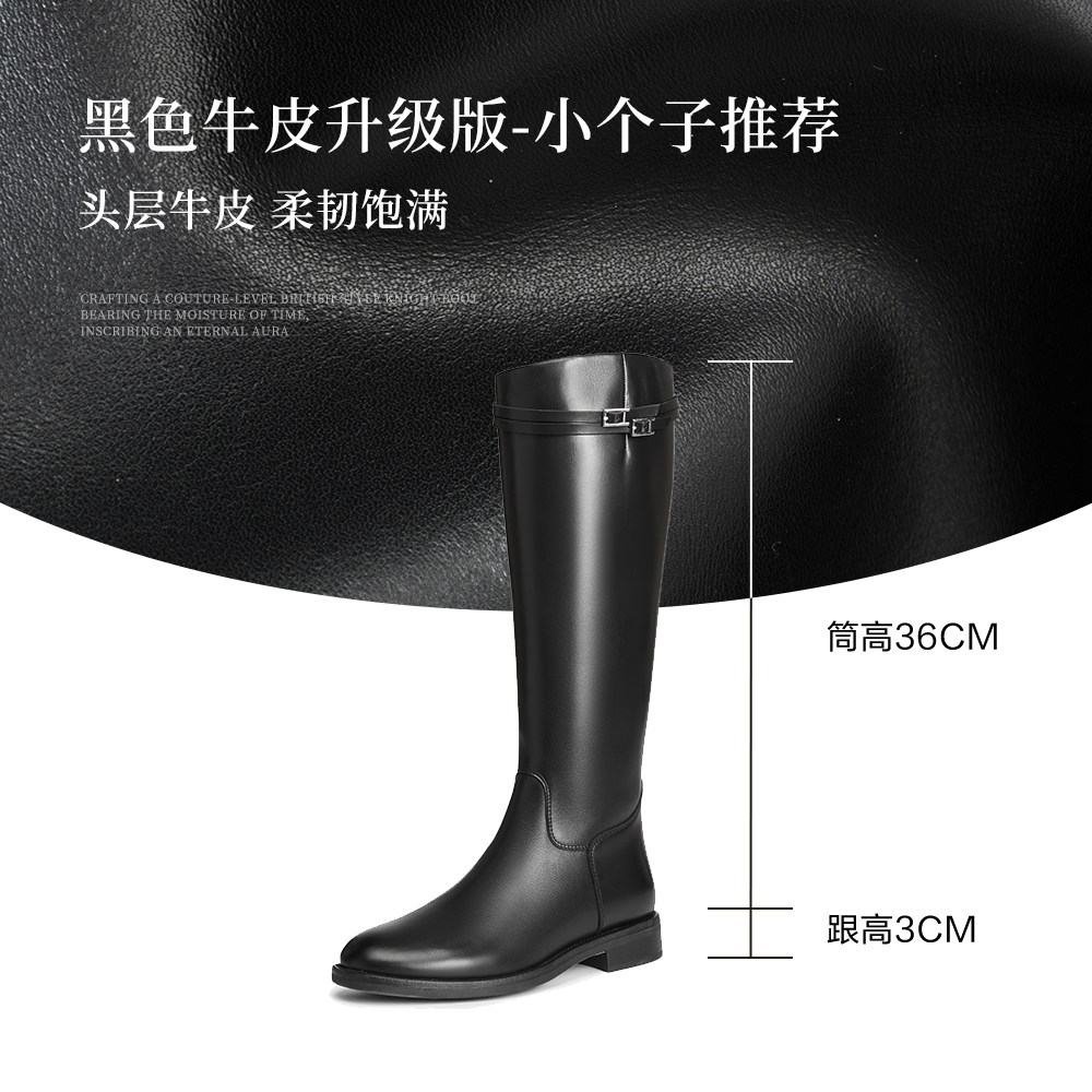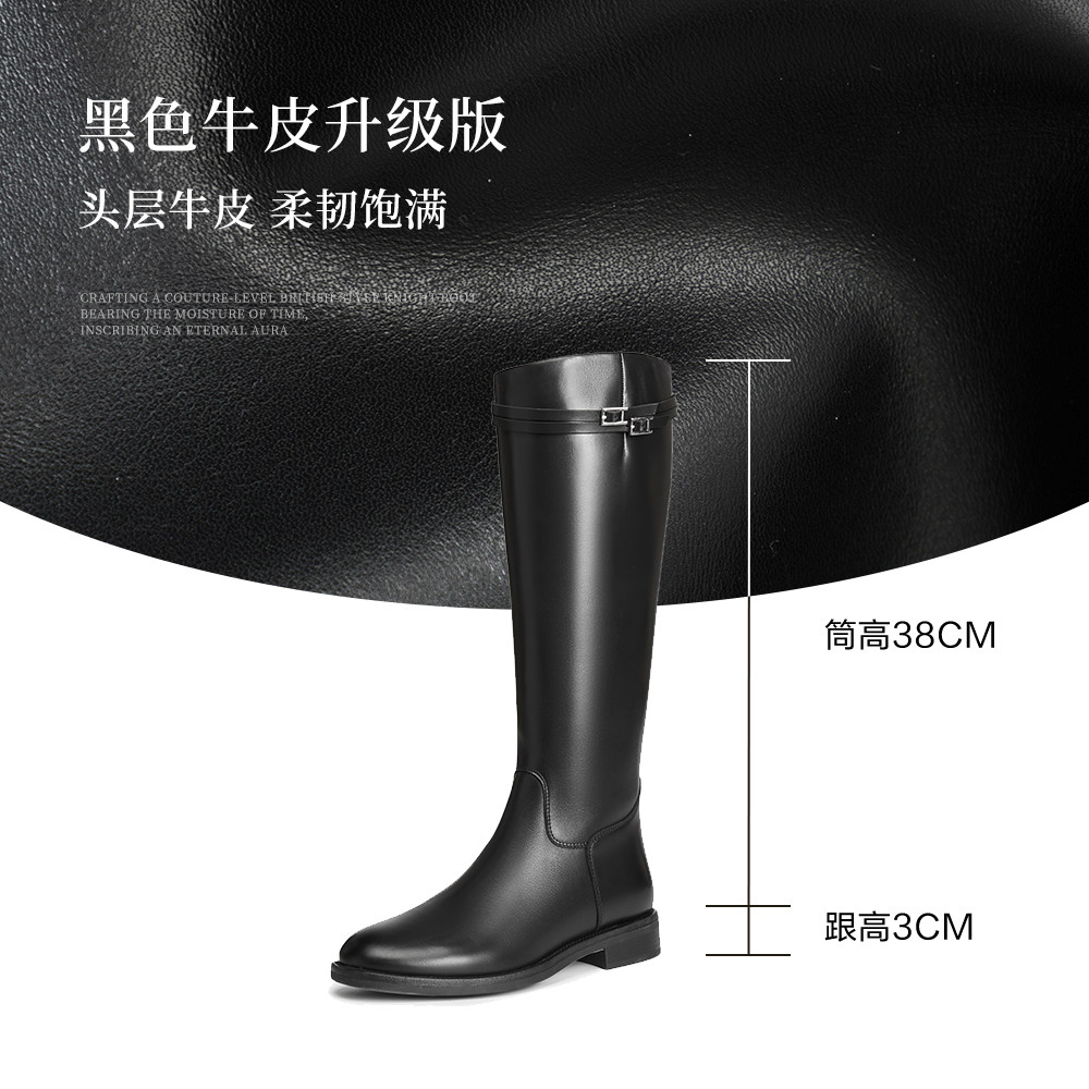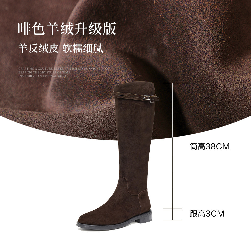 靴皮靴 时装 吴宣仪天美意千金靴复古厚底骑士靴加绒长靴女鞋 子新款
