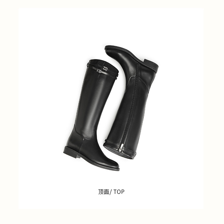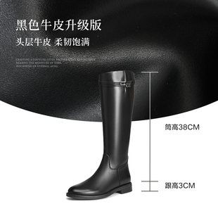 Fermina 显瘦长靴不过膝骑士靴女低跟长筒靴皮带扣机车靴高筒 秋季