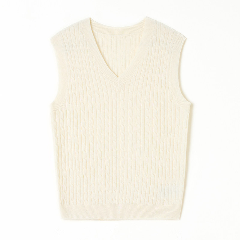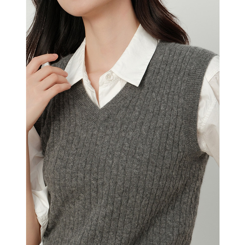 思诺芙德V领绞花山羊绒马甲女25秋冬新款 针织背心学院风外搭 无袖