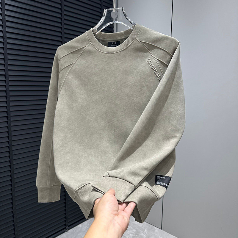 灰色圆领加厚无帽上衣 羊羔毛外套男士 CHINISM 加绒卫衣男新款