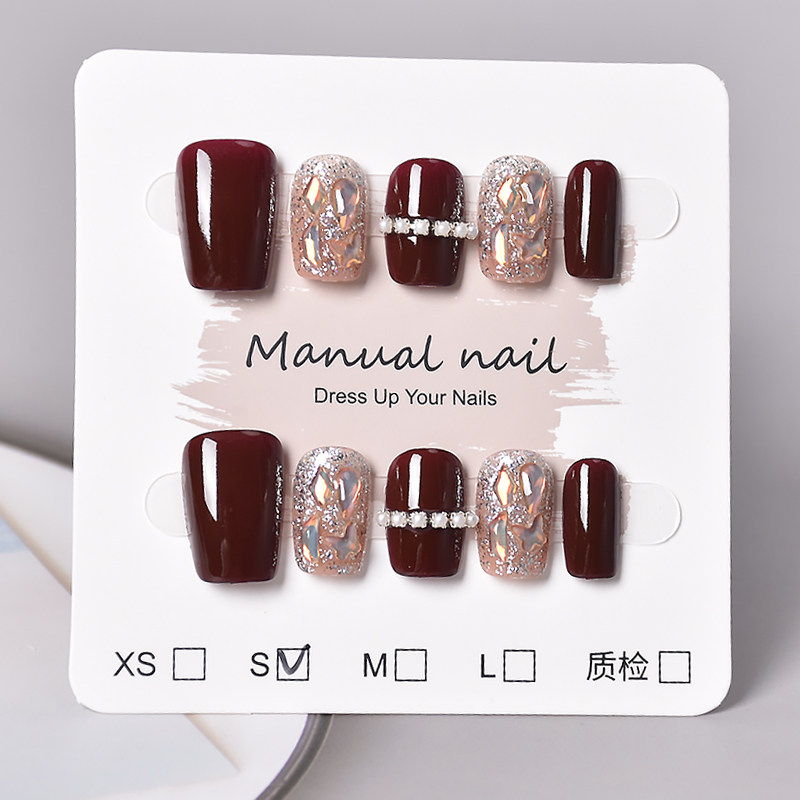 2025年新款 穿戴甲高级感香槟烟火甲片美甲贴片指甲显白手工甲猫眼