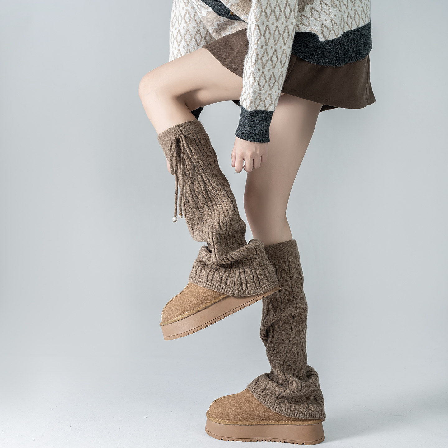 过膝袜子女长筒袜秋冬新疆棉加绒加厚小腿袜冬季 长腿纯色护膝袜套