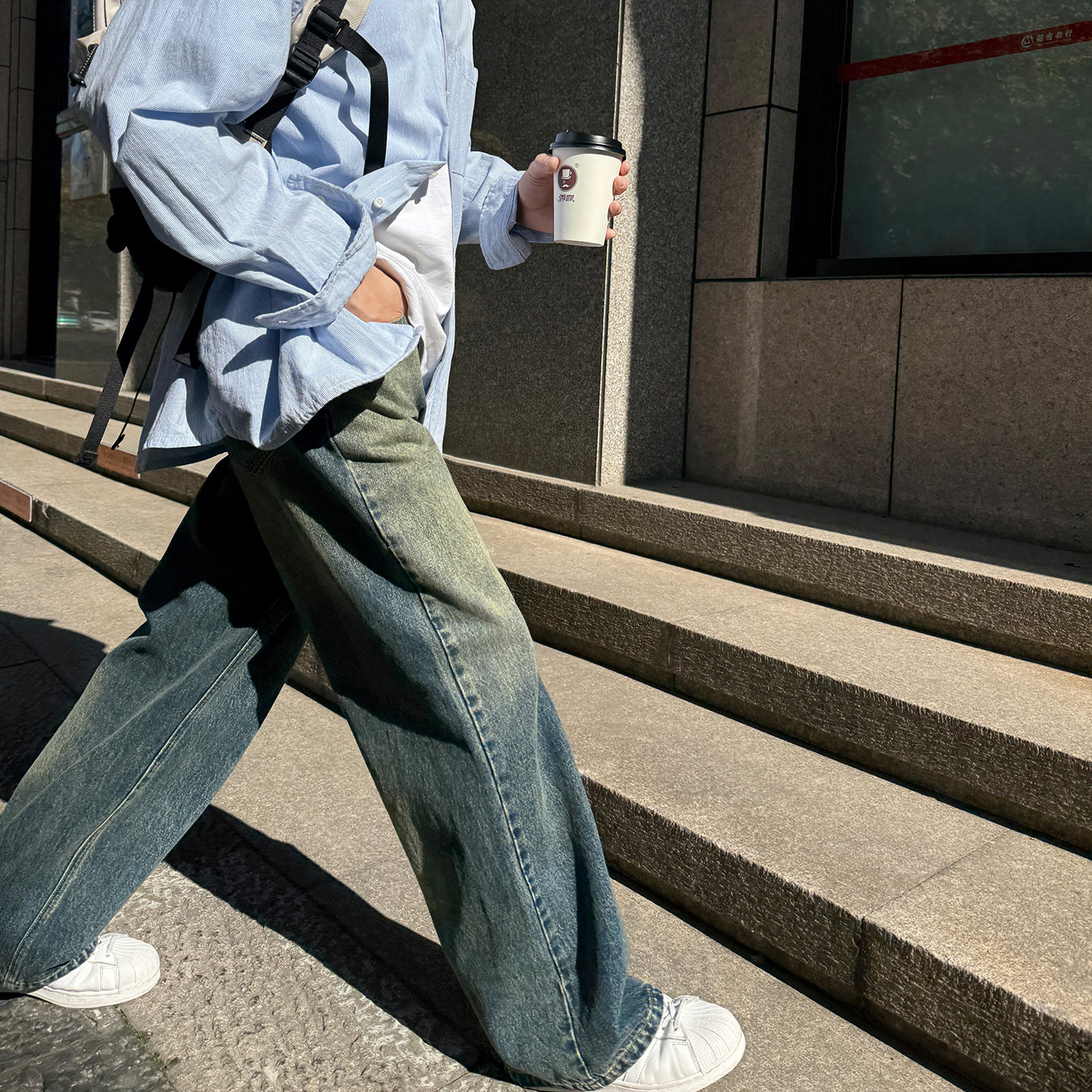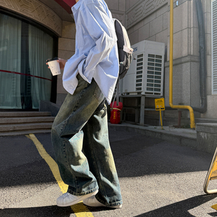 MADE 阔腿宽松休闲裤 浅色水洗牛仔裤 美式 子 男秋冬直筒长裤 GOOZI