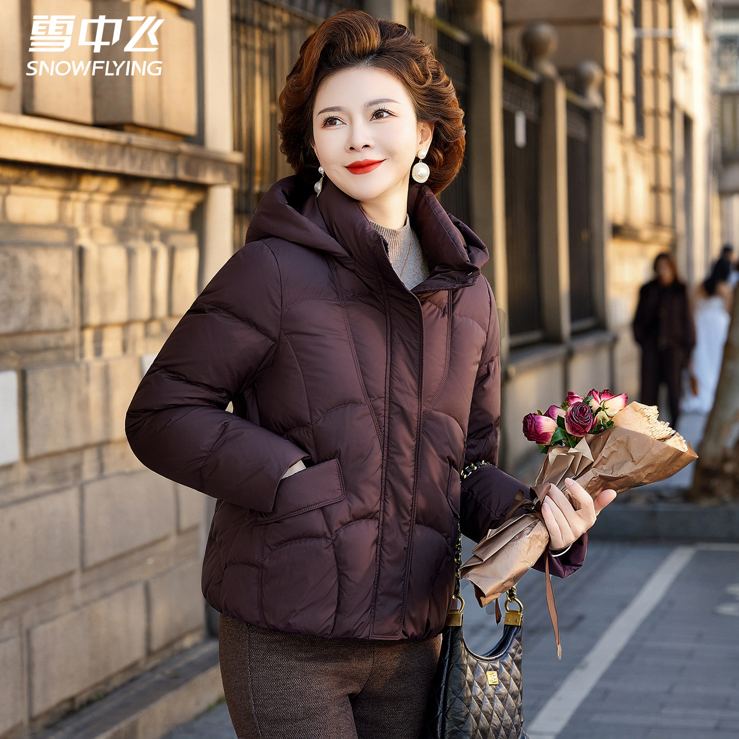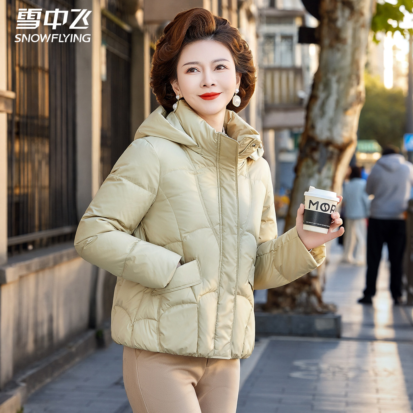 保暖冬装 中年妈妈新款 洋气中老年连帽外套 羽绒服秋冬季 雪中飞短款