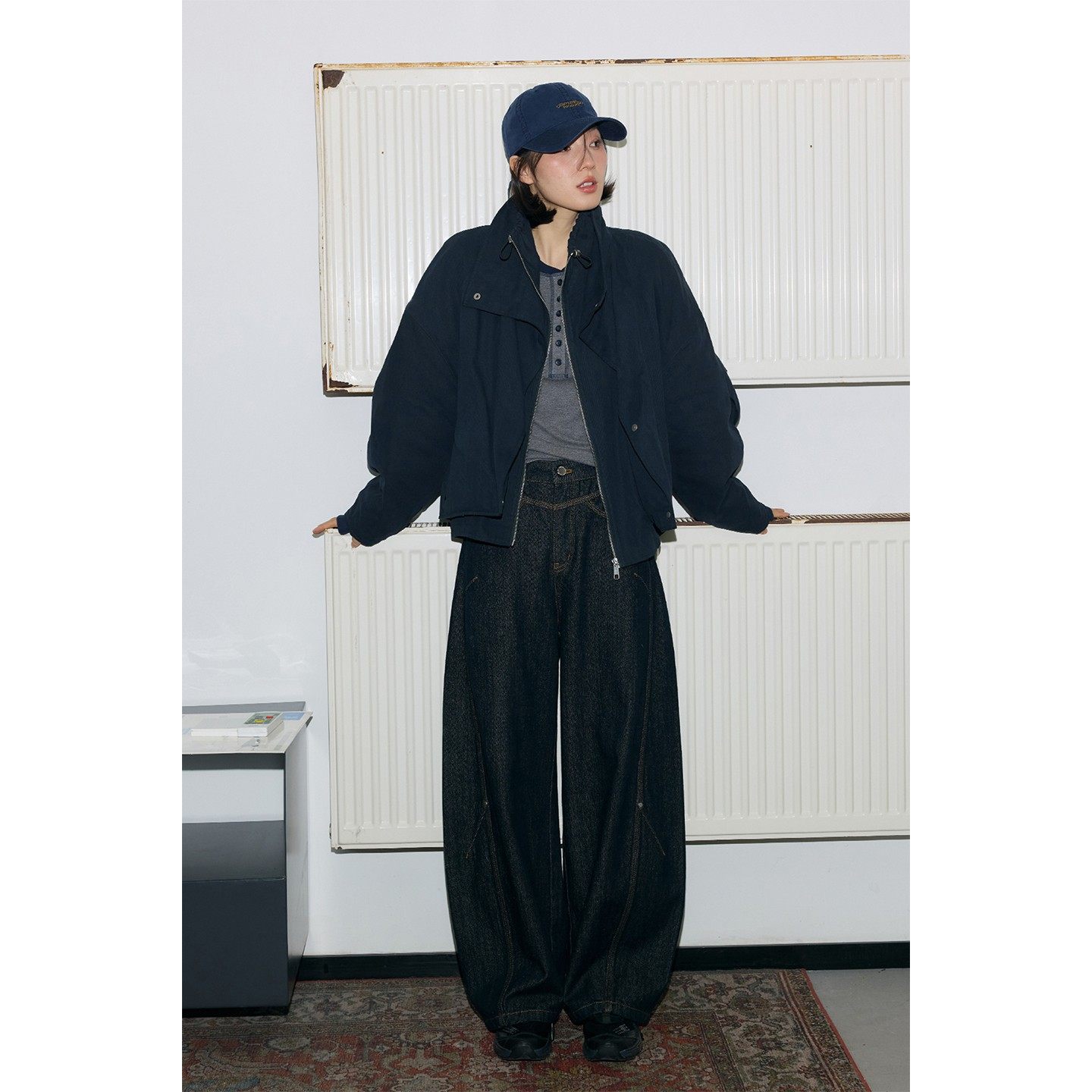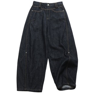 6909 棉感内里抓绒丹宁蓝休闲压线牛仔弯刀裤 鹿与飞鸟 丹宁公式