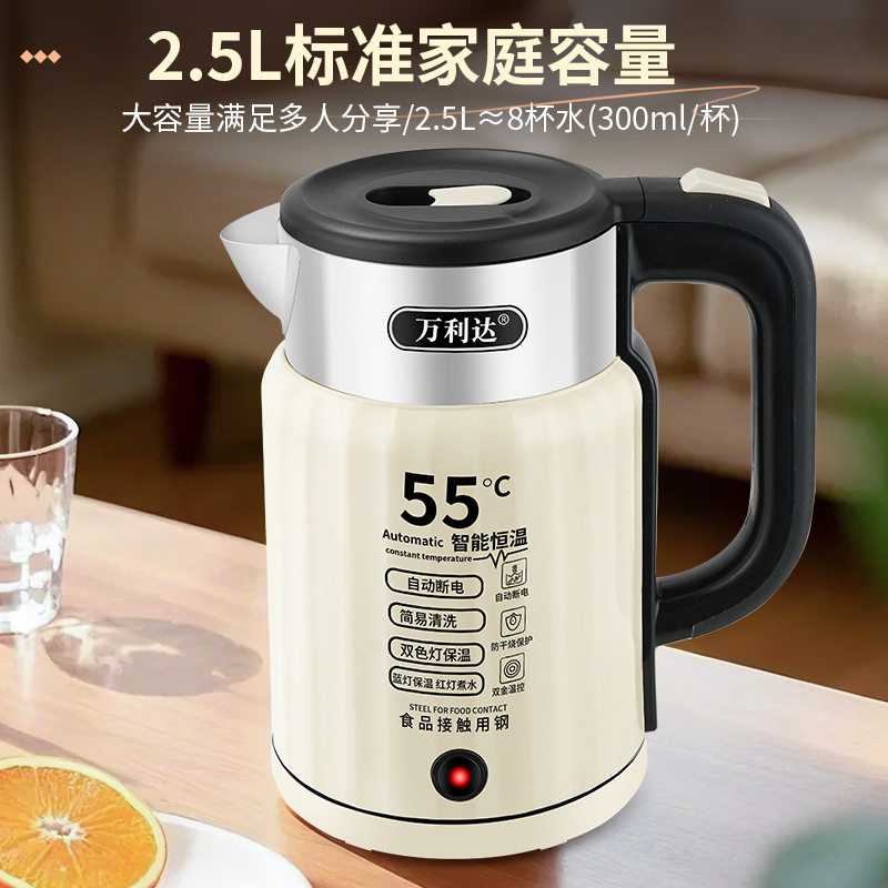 2025新款 万利达自动保温烧水壶电热速热家用不锈钢304保温壶