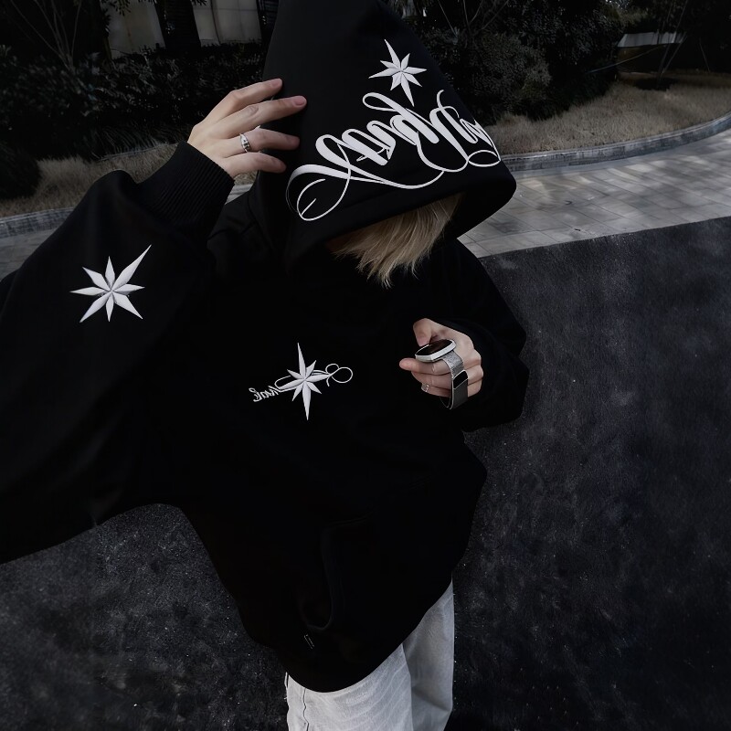 PFR AND豹纹贴布刺绣连帽卫衣情侣宽松潮牌加绒运动休闲套头帽衫
