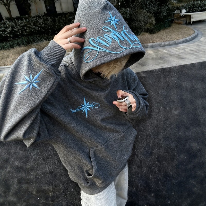悟空有货美式 复古半拉链立领运动卫衣男宽松休闲潮牌情侣套头上衣