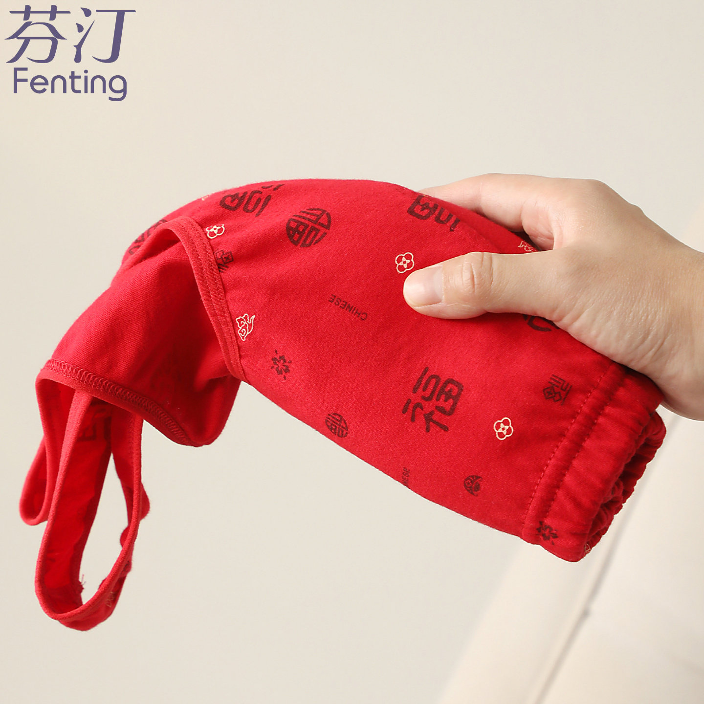 马 红色中老年人前扣文胸纯棉内裤 朵凡妮妈妈本命年内衣套装 女大码
