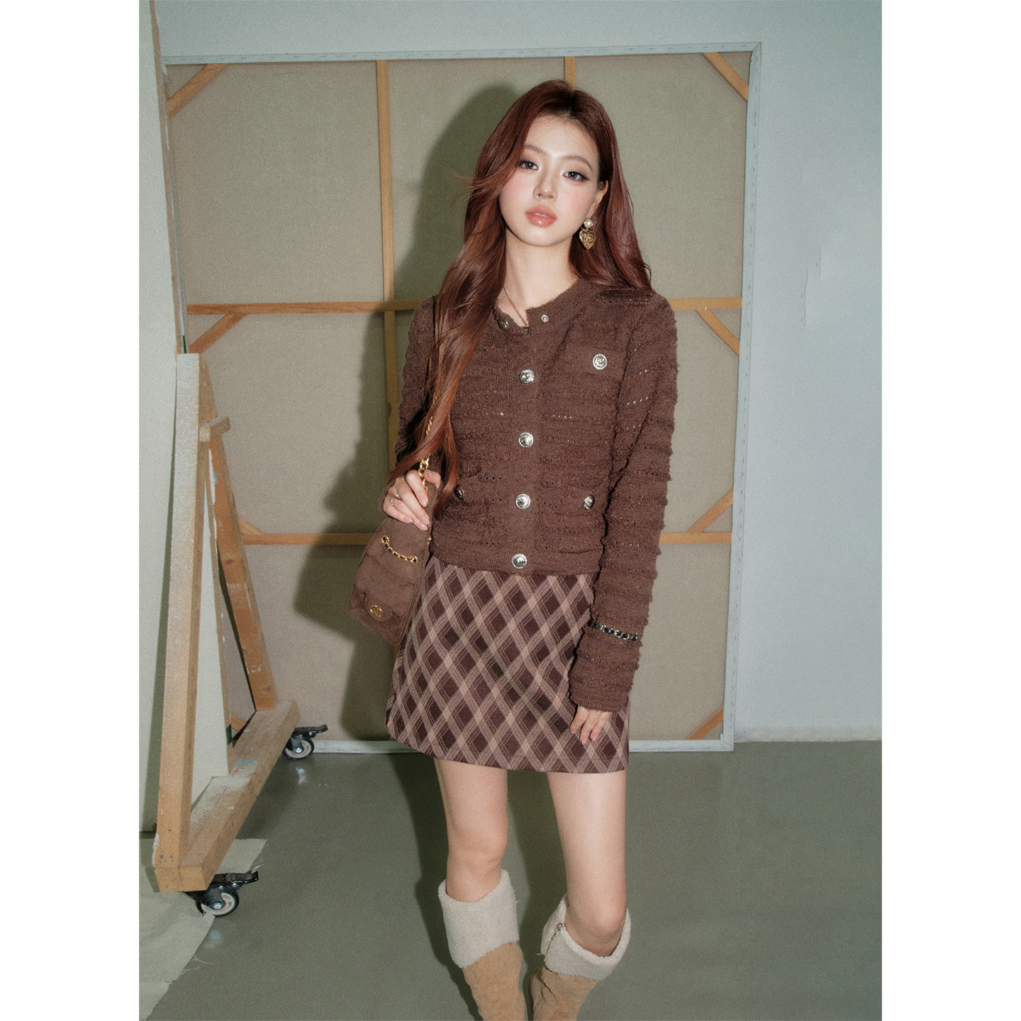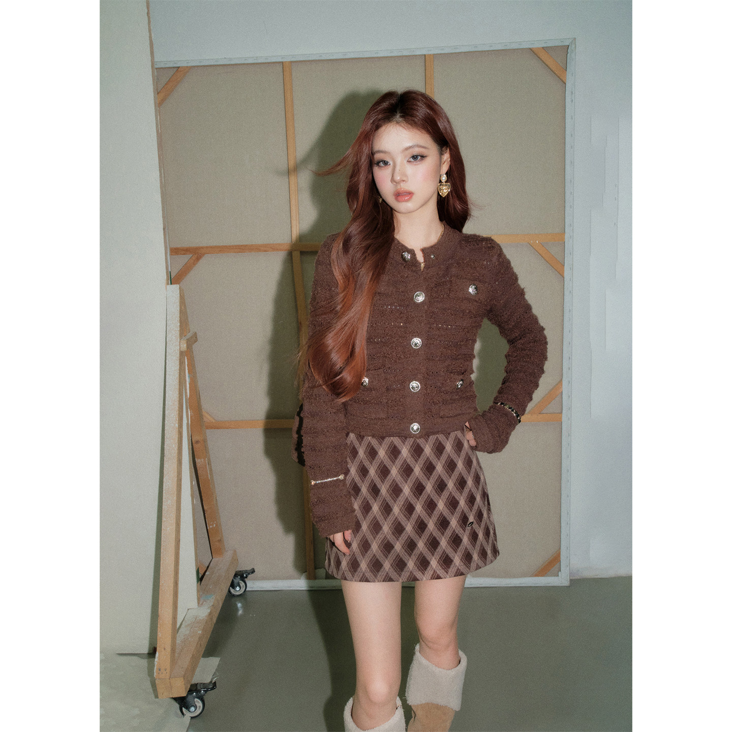 2025冬季 小香镂空针织衫 小香风修身 短款 咖色上衣 OLIVIA 长袖 DUO