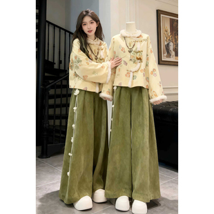 抽绳直筒休闲裤 UNRETRO 绿色运动拉链卫衣女 套装 两件套 首发时尚