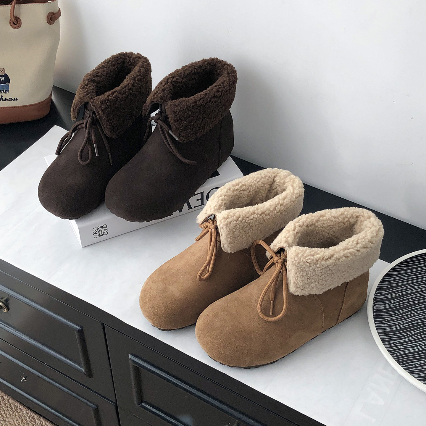 雪地靴加厚棉鞋 骆驼女鞋 加绒保暖时尚 新款 休闲短靴女 2025冬季