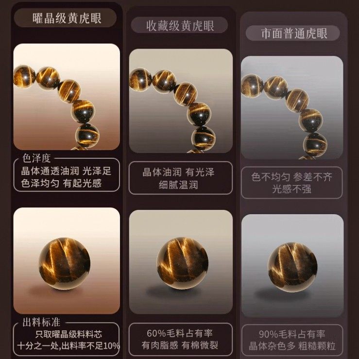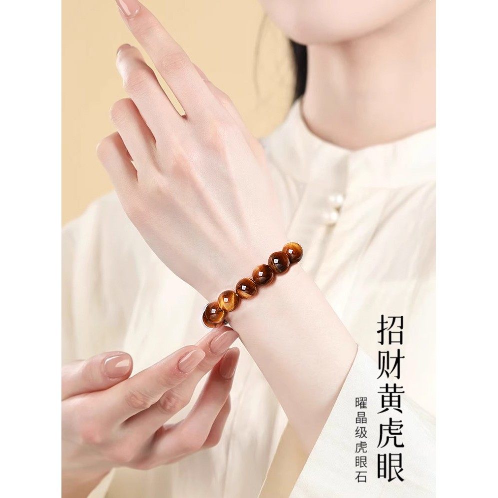 9A天然黄虎眼石手串闪电纹南非金虎眼手链男士 情侣圆珠子招财 女款