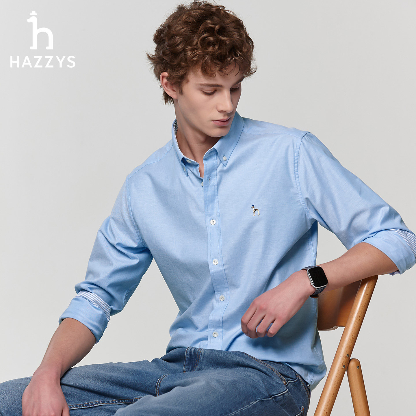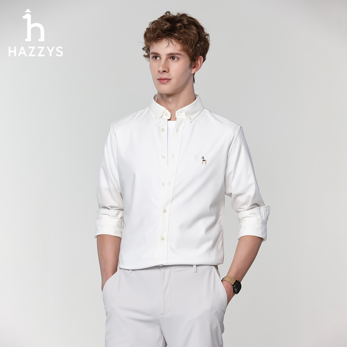 衬衣通勤时尚 哈吉斯hazzys官方男士 正品 春季 上衣男潮 纯色休闲衬衫