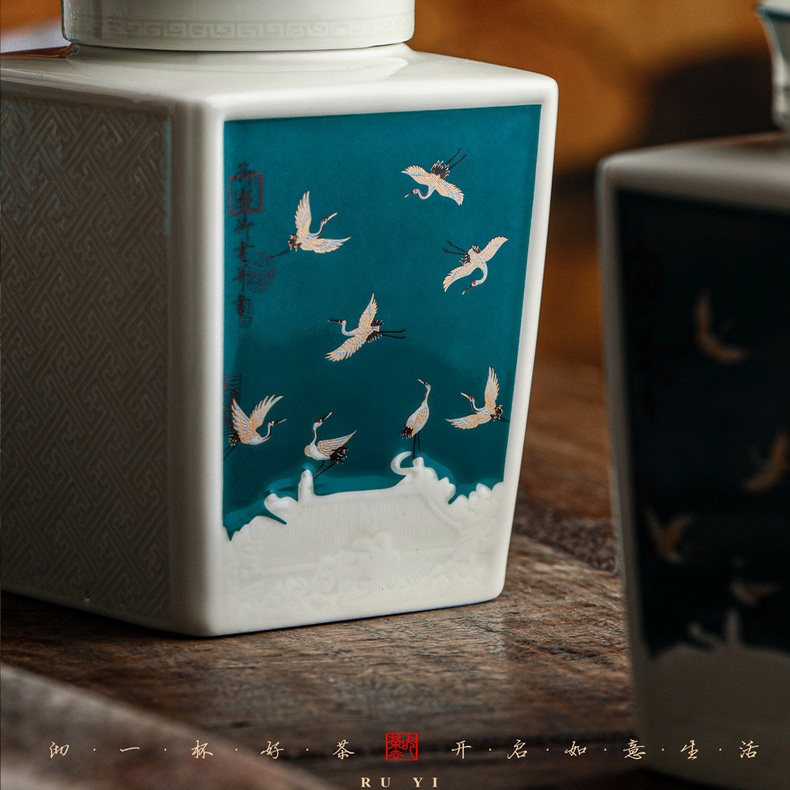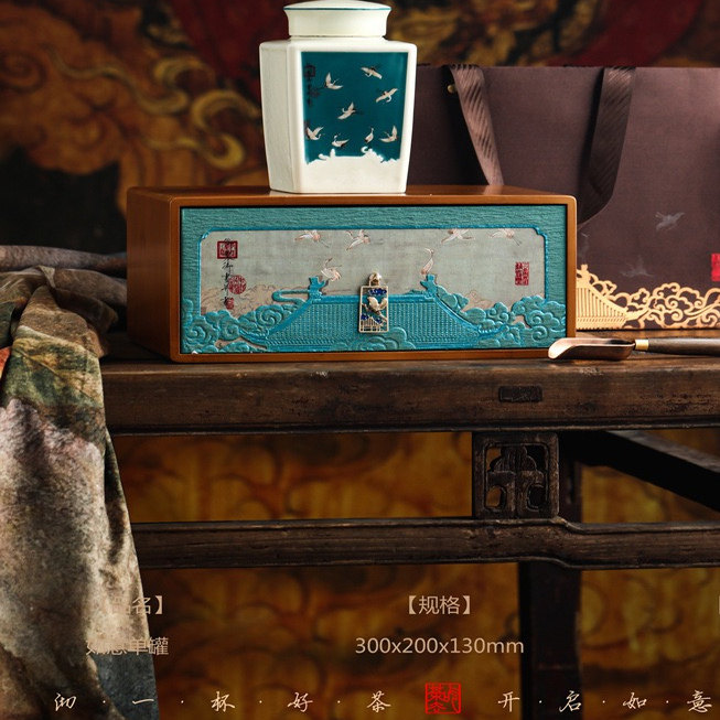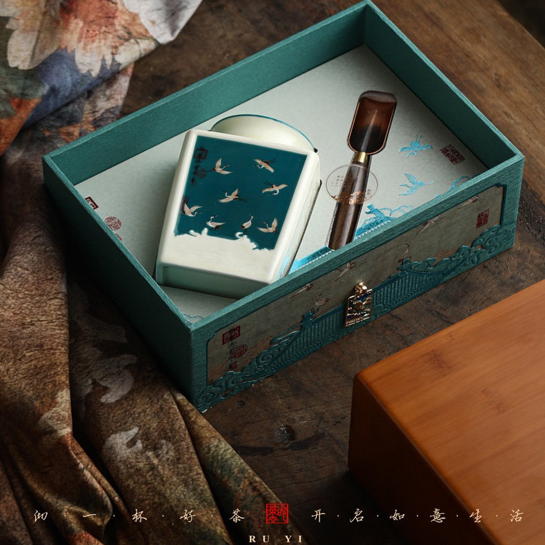 景泰蓝珐琅 陶瓷罐茶勺高端 伴手礼茶叶礼盒之 珐琅云鹤·如意匣