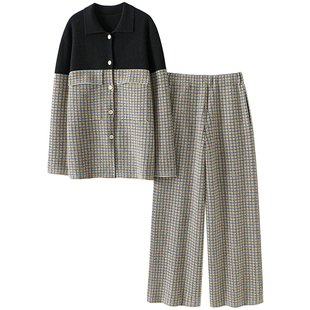 新款 高定牛货 子女外穿套装 女针织羊绒裤 重磅加厚100%纯羊绒开衫