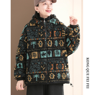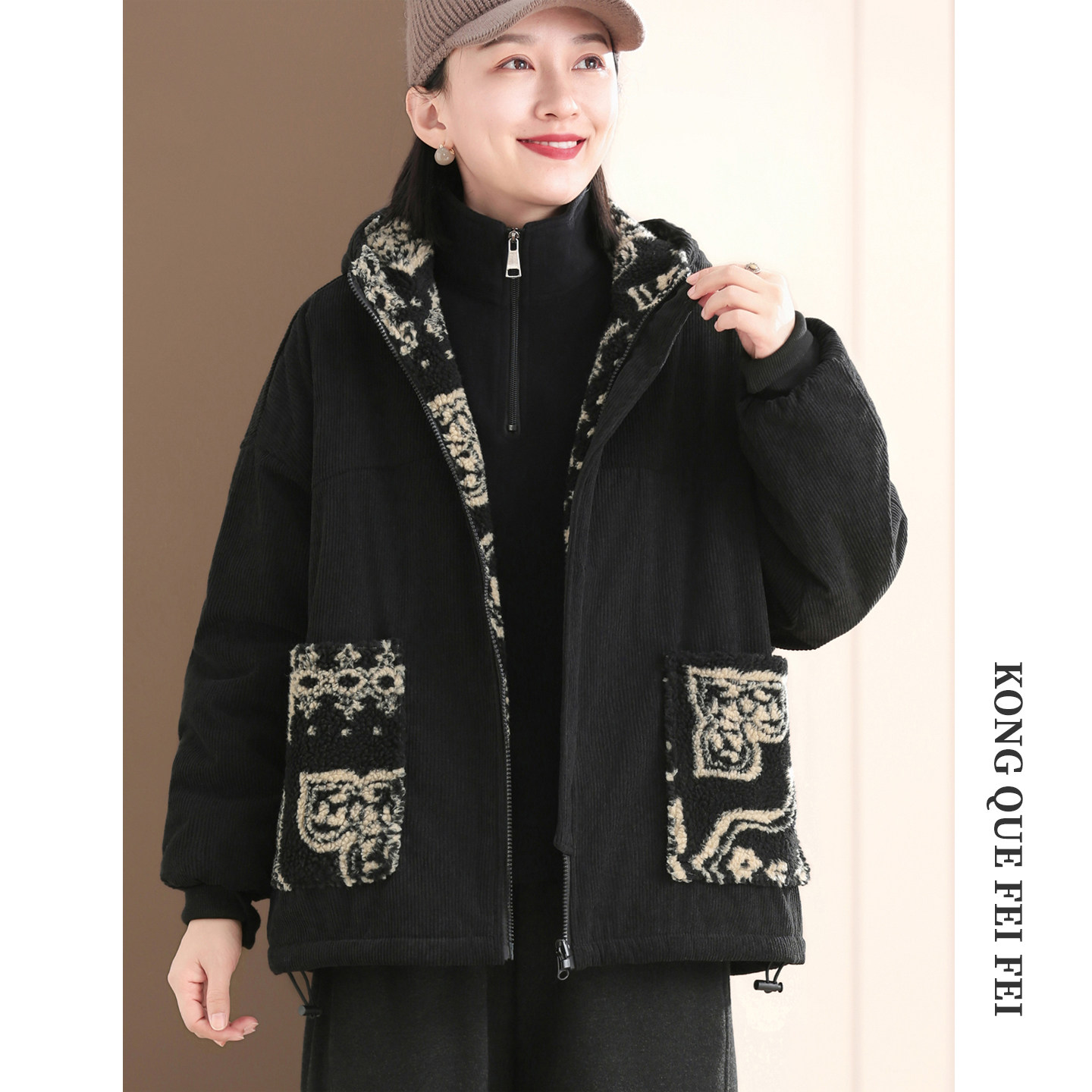 2025冬装 型爆赞 新款 韩版 复古休闲女双面加绒棉衣 孔雀飞飞 大码 版