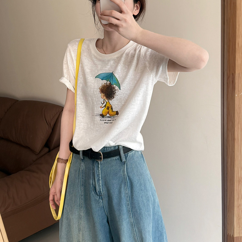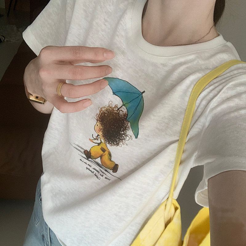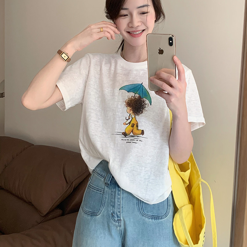 圆领气质百搭上衣短袖 话里基础款 韩版 新款 单色图案白T恤2026春季