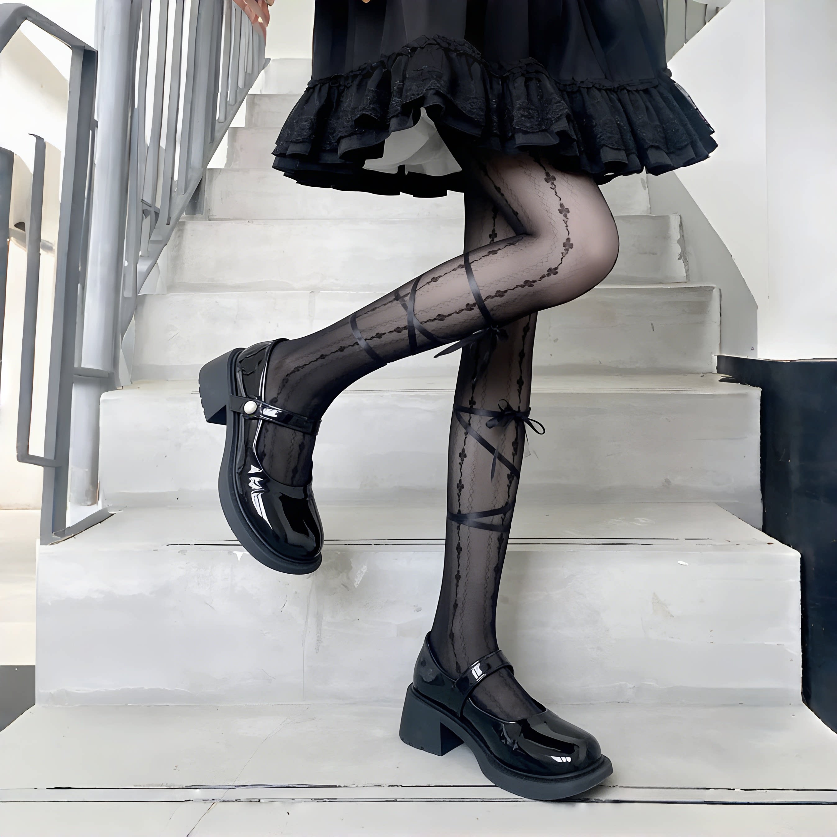 lolita白色丝袜女薄款 袜子 纯欲jk打底袜子芭蕾风复古蕾丝绑带连裤