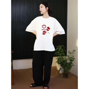 上衣 T恤男女宽松重磅纯棉潮牌情侣款 美式 高街风印花短袖